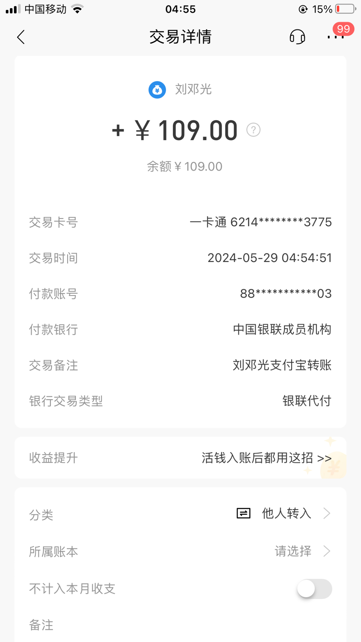 到账了