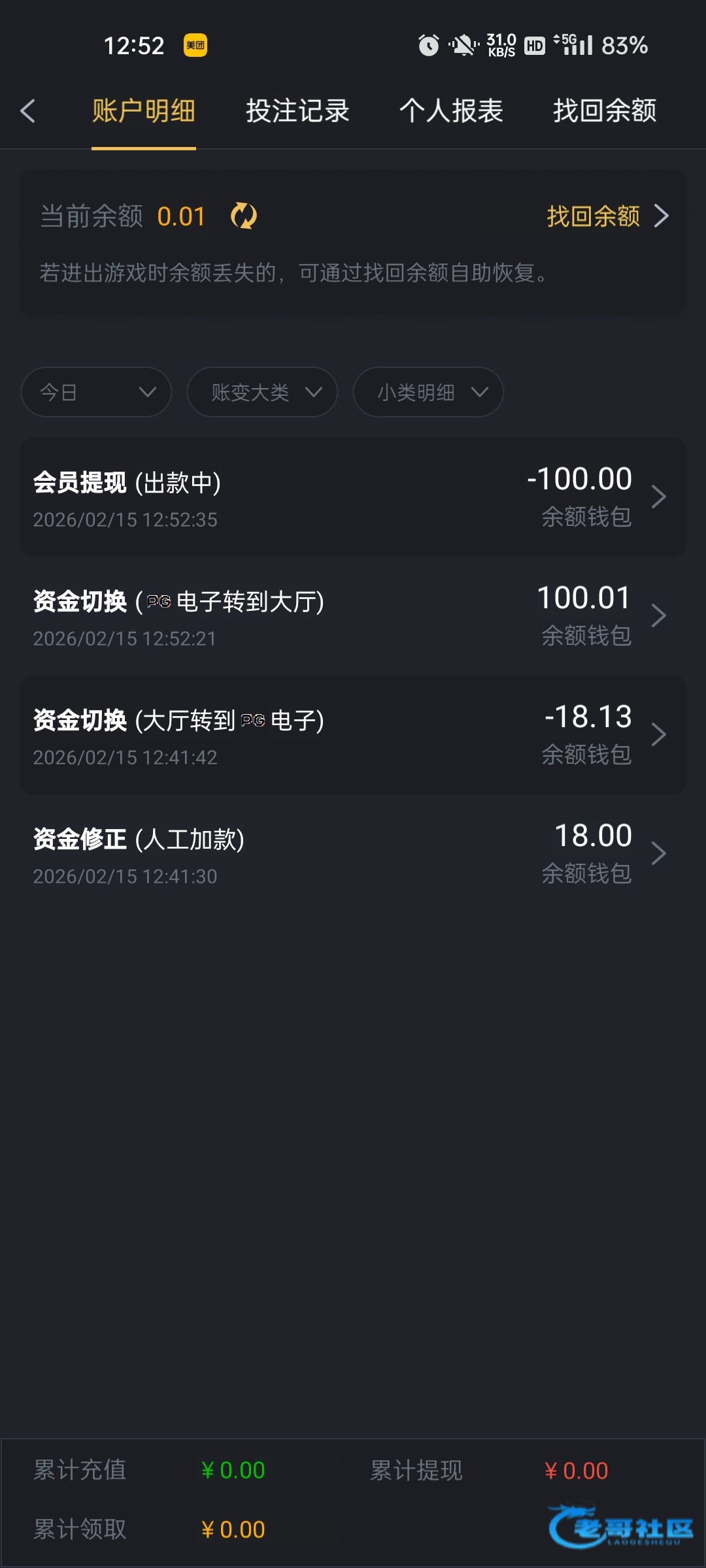 出款情况:自测(