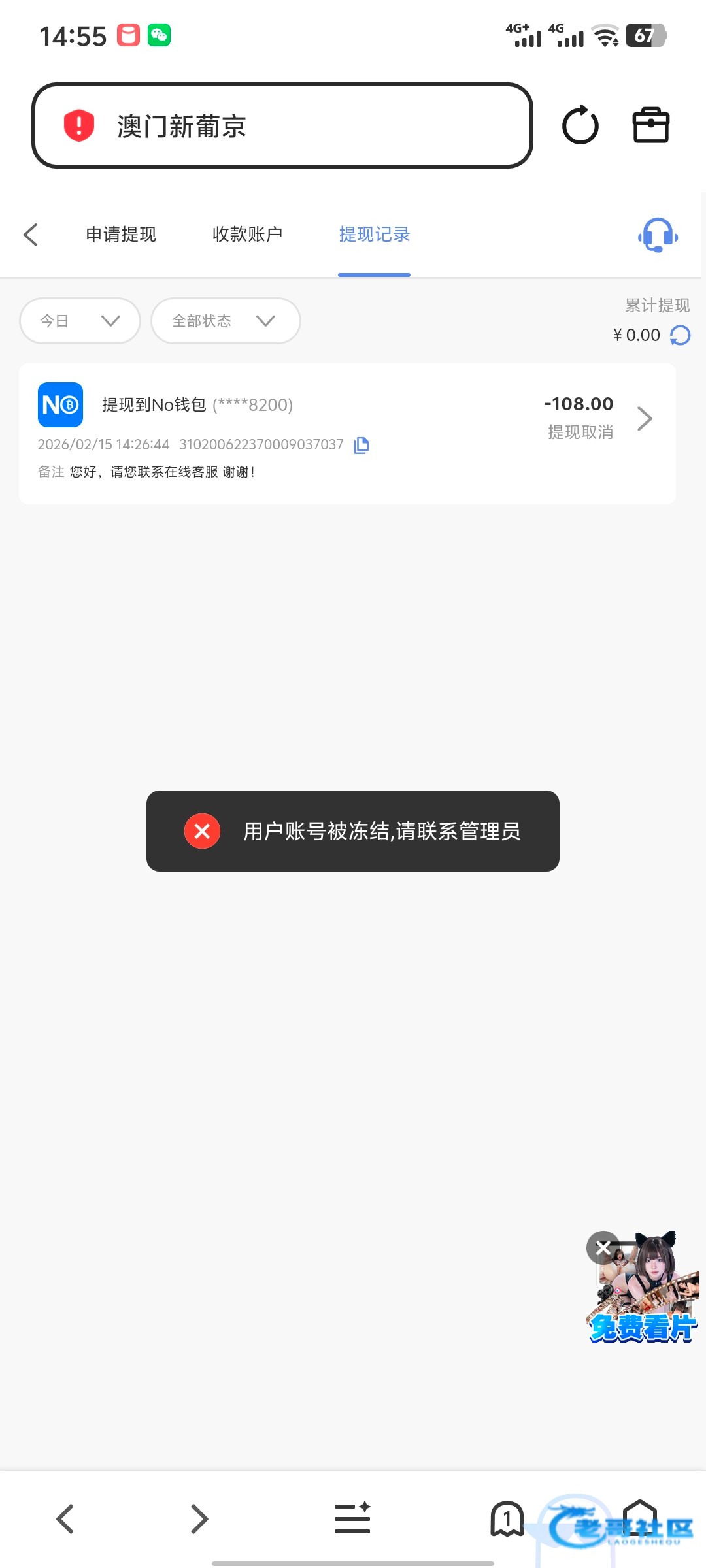 我都还没提款呢就账号已经冻结