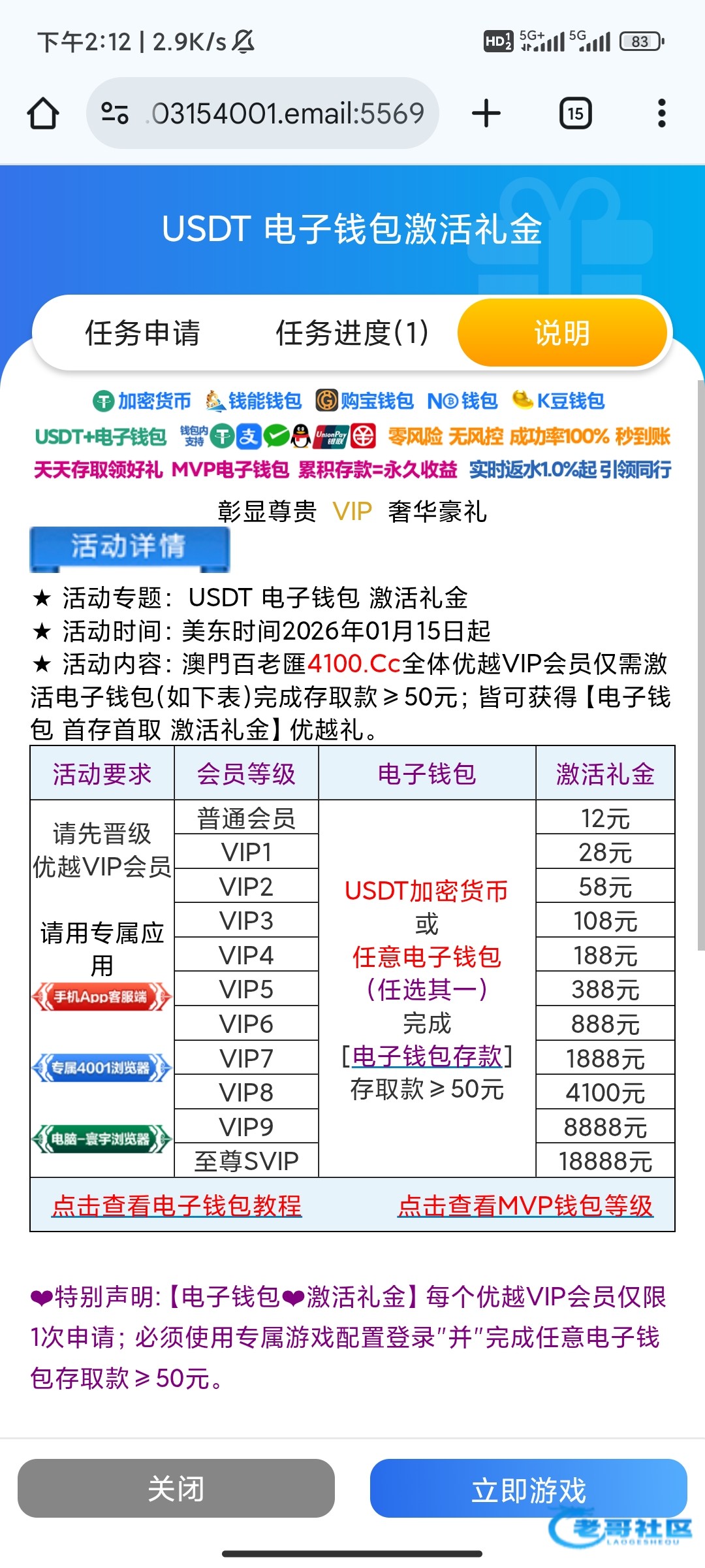 最近有玩过可以去申请一下,除夕回馈要等级,还要最近有一次存款记录,有等级的别忘了4001.com