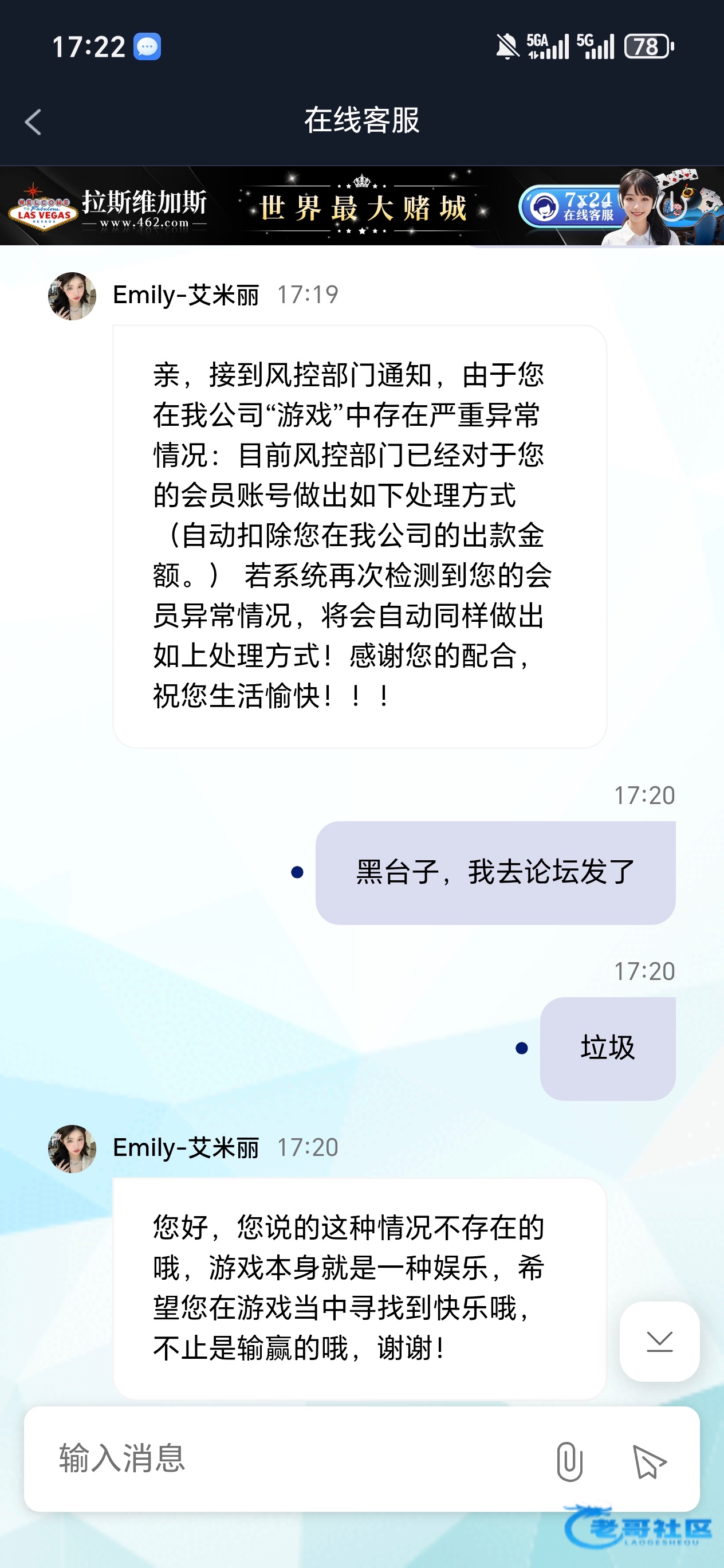 我今天接到一个电话说是462拉斯维加斯让我参加充值活动,我充了200玩麻将糊了爆了2000多,我就提了2000准备继续玩,提了半小时我号被登出来,结果我问客服说给我黑了,我草
