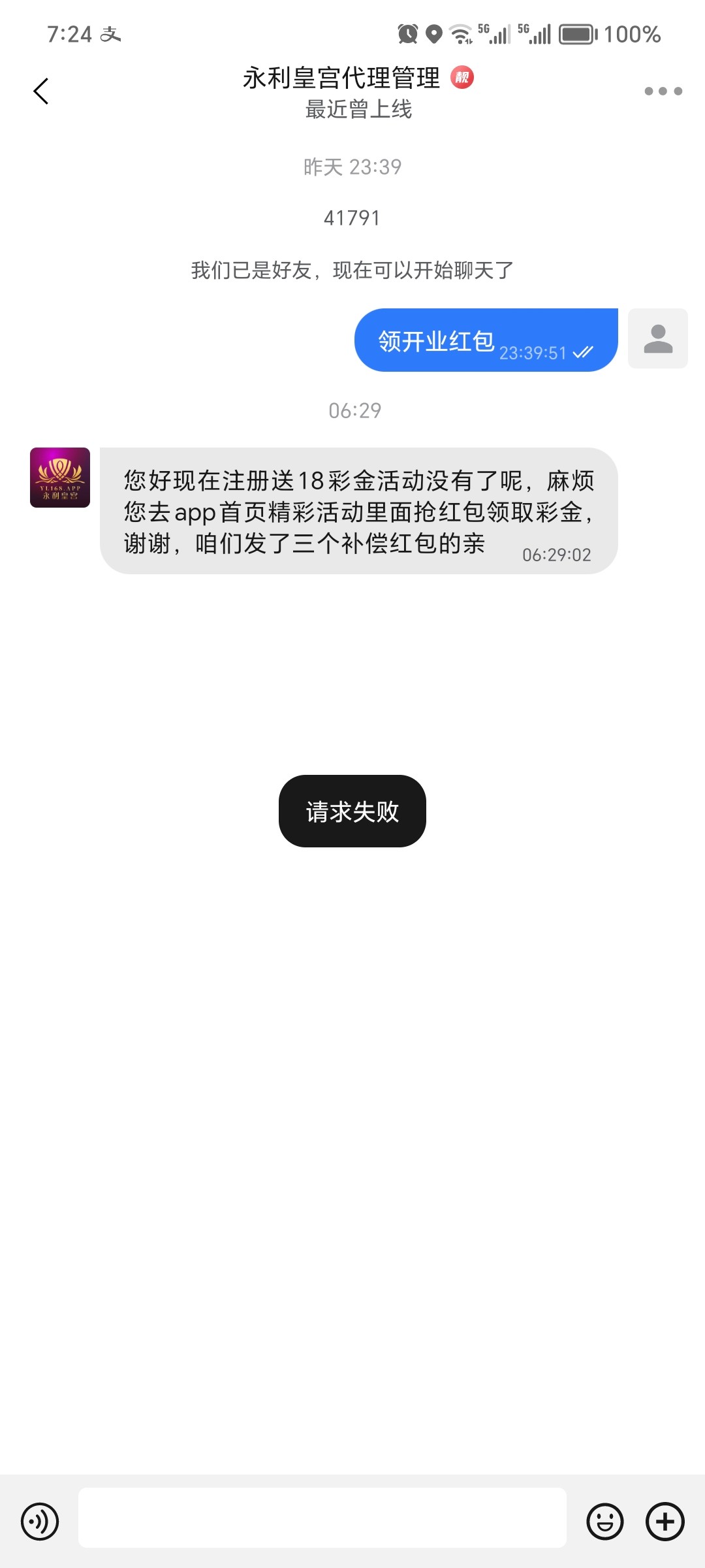 注册还送18直接留言活动客服,23:59分不到账18的去代理中心找管理领取18。