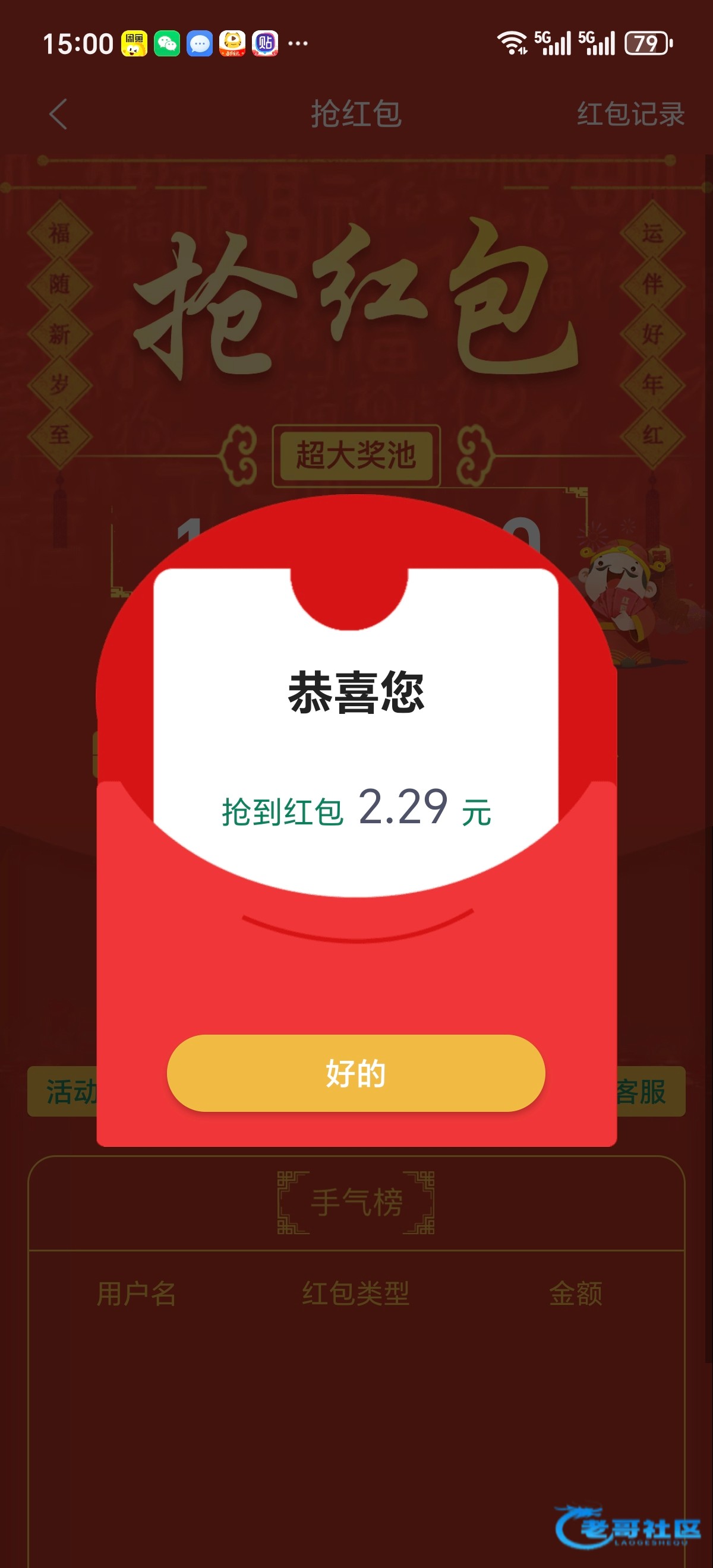 抢红包最多抢到300多块,就一次,评论区各位大包老哥牛逼