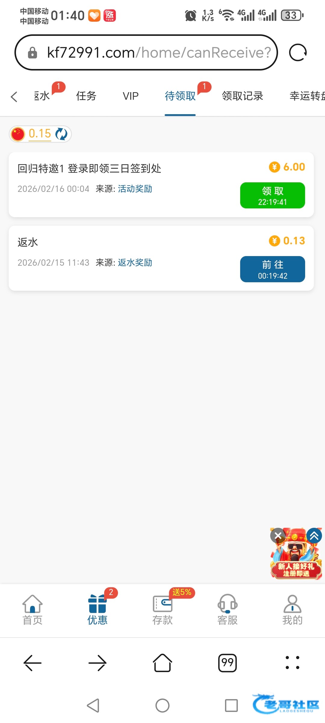 前两天电话回归彩金 联系三天每天能领6,我两个号都领了链接72991.com