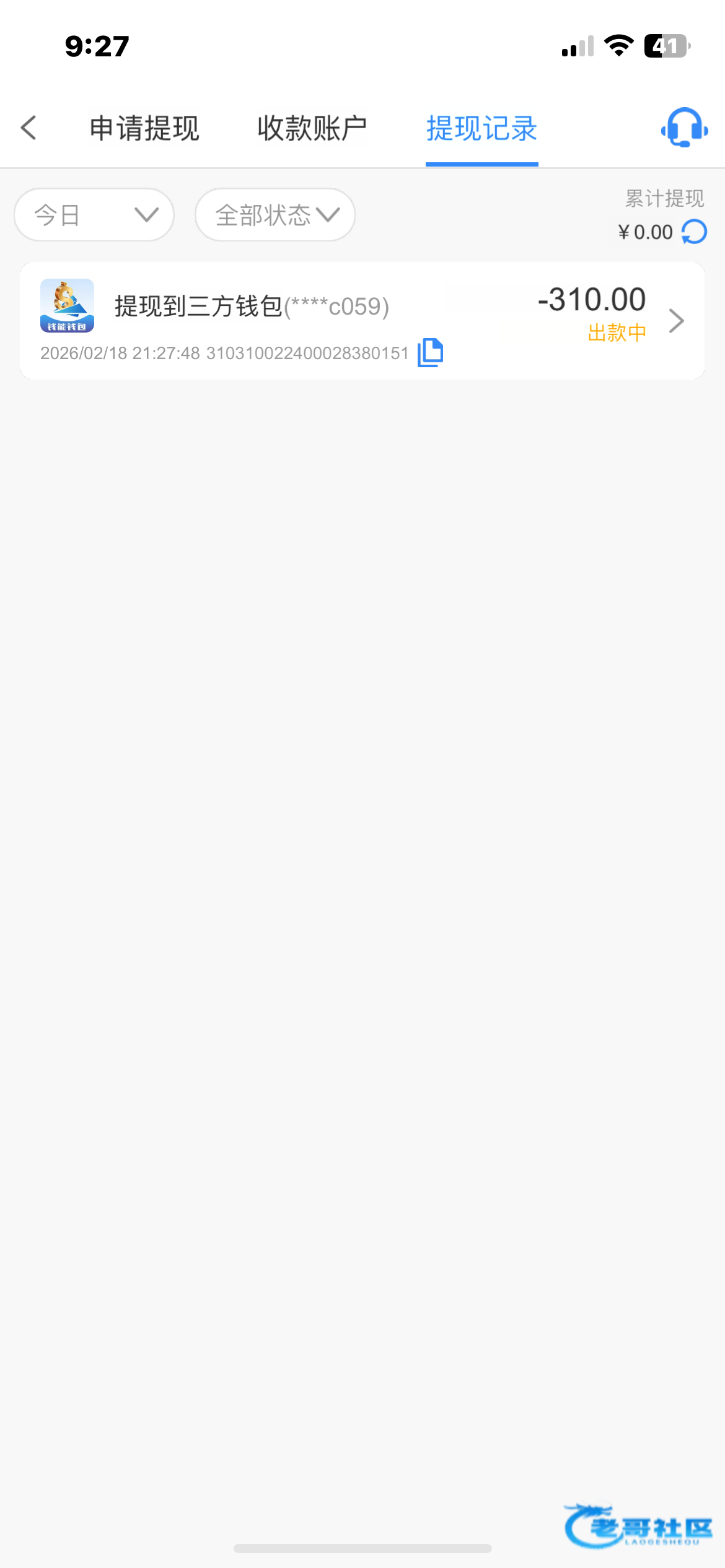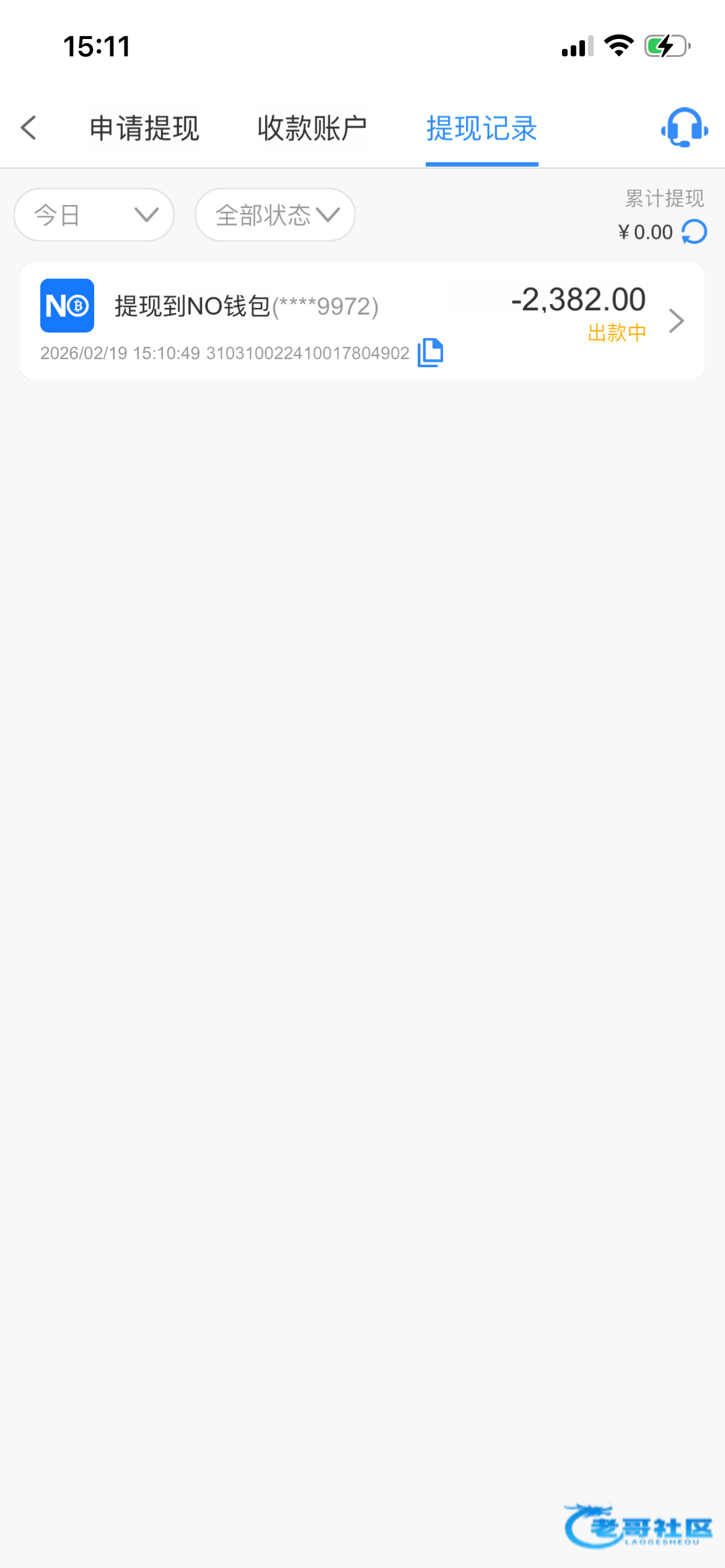 提现了 不知道能不能到