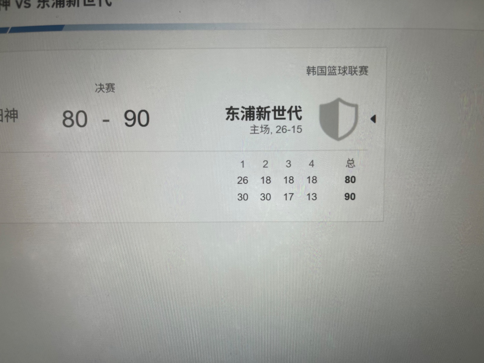 第一节结束我看新时代30分。开盘新时代大小90.5。1.8的赔率。我还以为韩国篮球3节呢。一看是4节,那1节30分,4节肯定比90多啊,梭哈大90.5。第二届又拿30分,我想稳了。结果.....最后就浪投都不进球的 哎