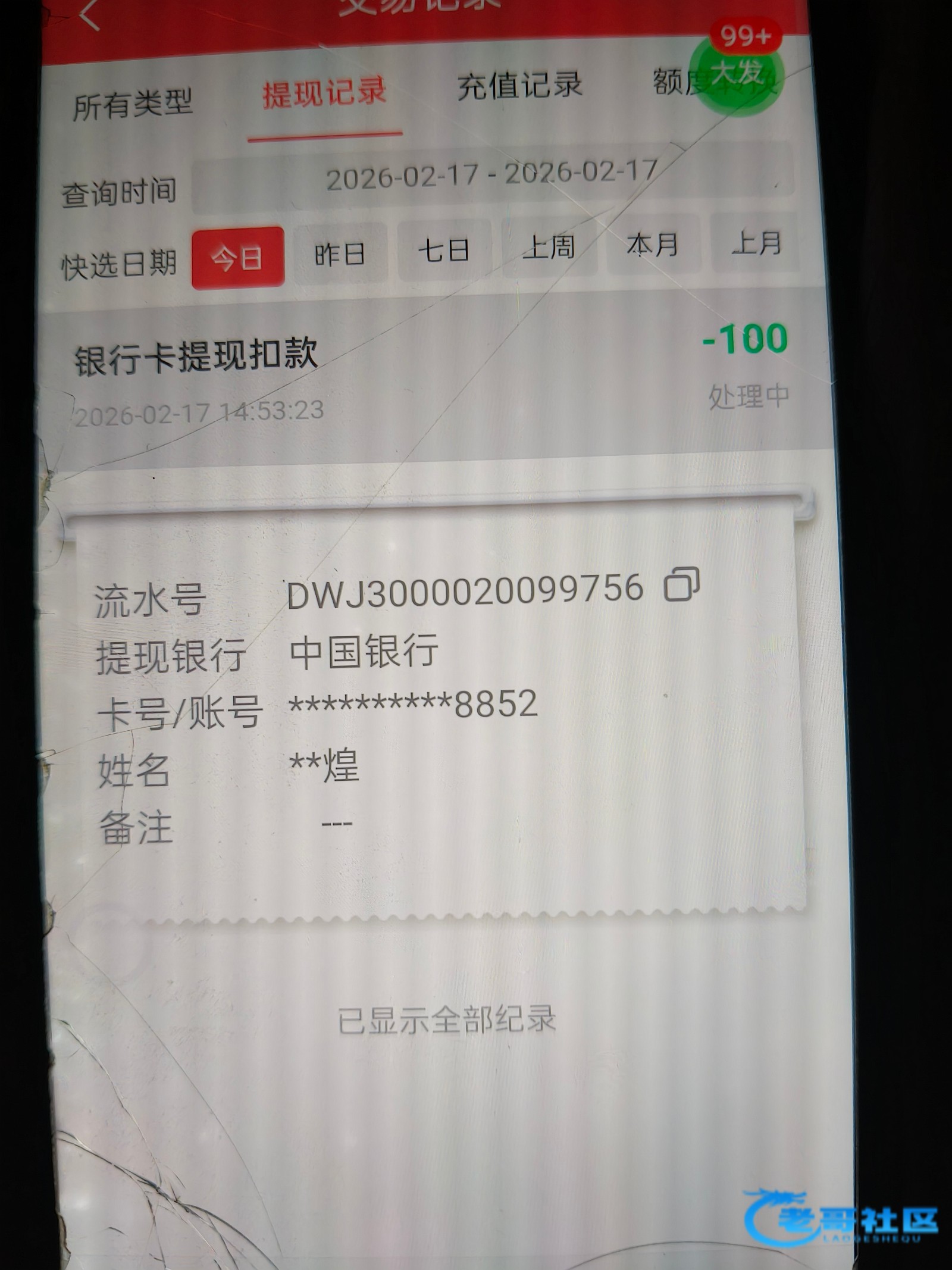 14.53提款的,你银行卡到账42分?这1500确定是这个台给的?