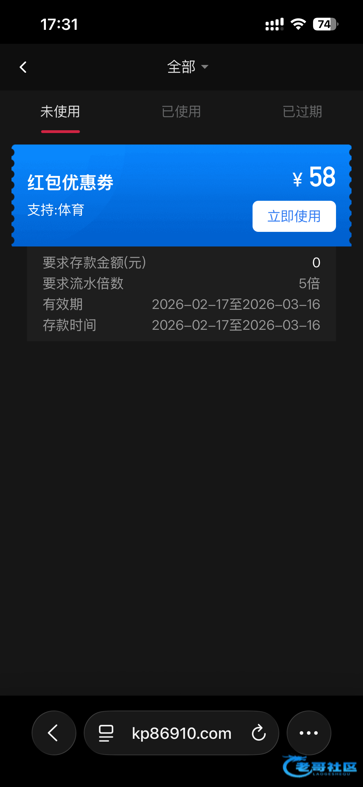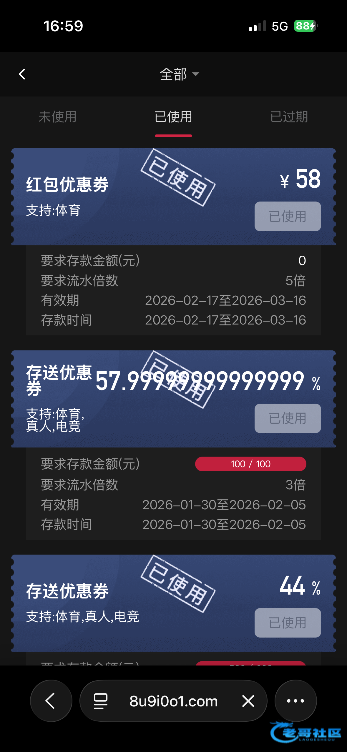 优惠券里直接领取,58免费彩金限制体育五杯水提,我两个号都领到了,我以前充值过不知道没充值有没有,官网ut88.com