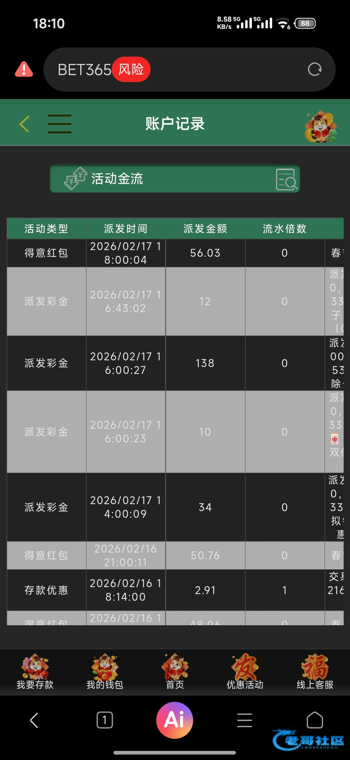417这两天抢红包抢了200左右