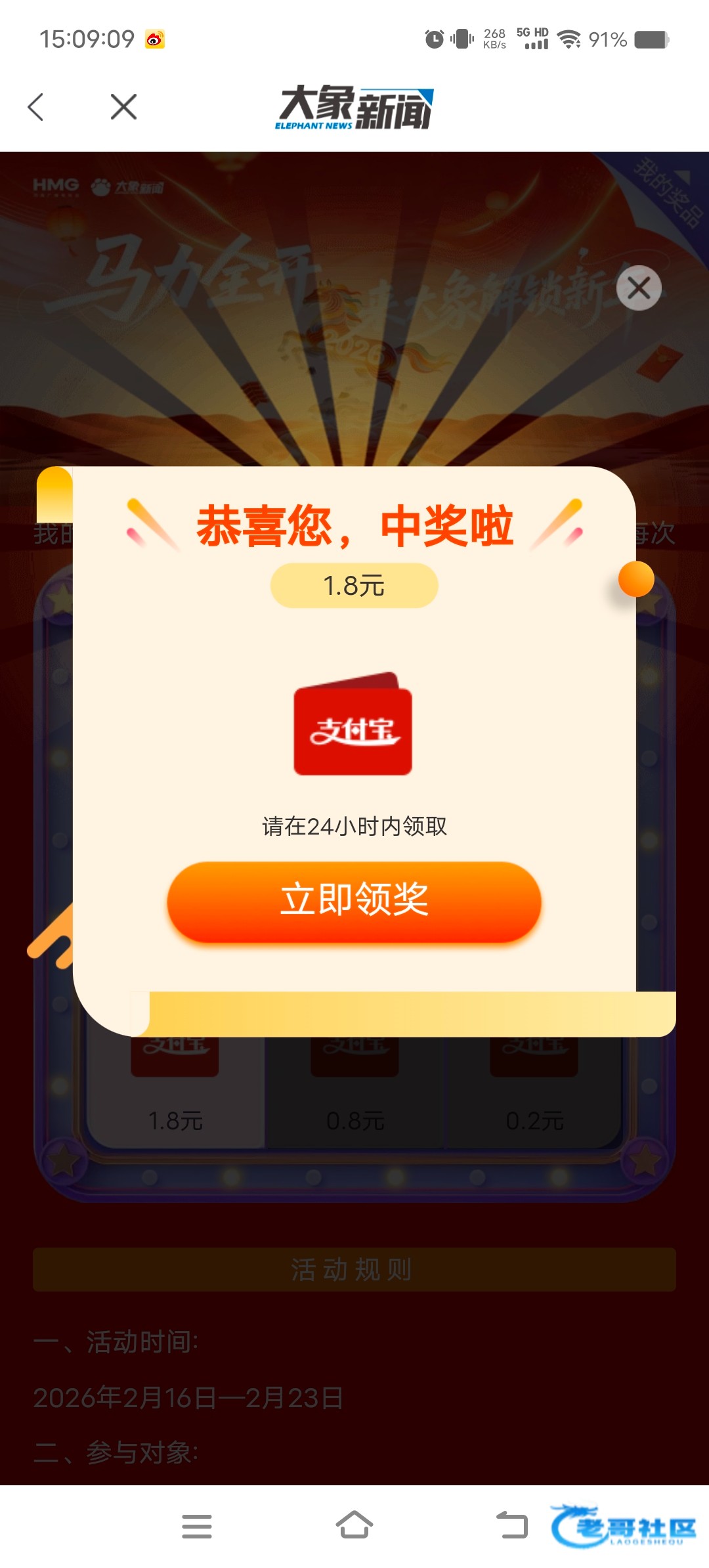 V扫 大象新闻对口令抽最高88鸿包