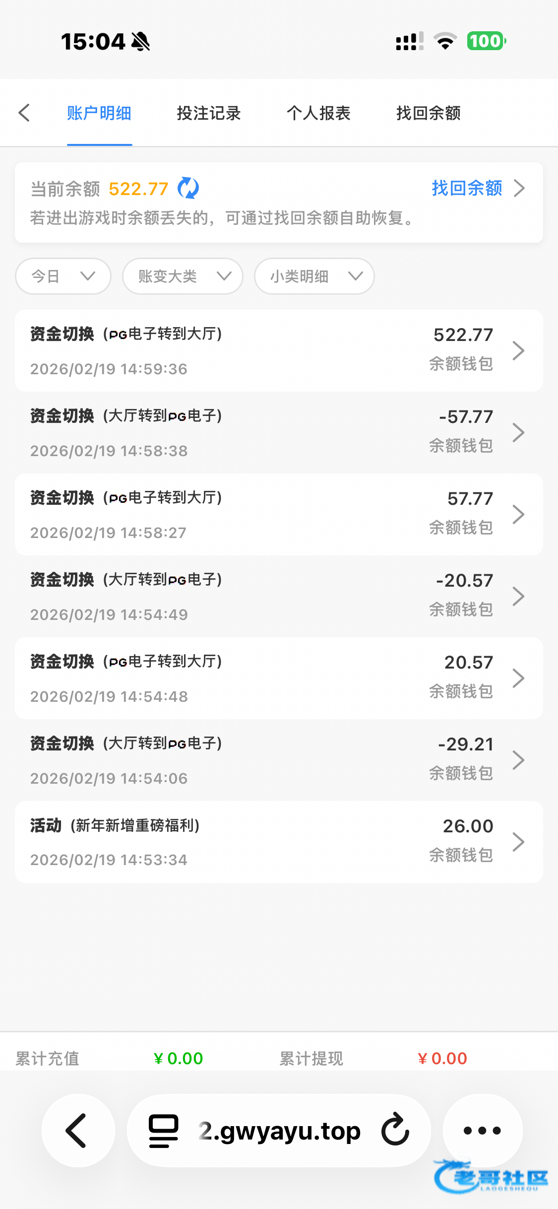 闲着无聊刷帖子,看到这个说有送,就登录上看了一下送了26,拉了几下爆了,跟做梦一样,也许这就是赌博的魅力吧。最近充值一直挂逼,也不是没赢,每次赢了都不跑,真是有心栽花花不开,无心插柳柳成荫。