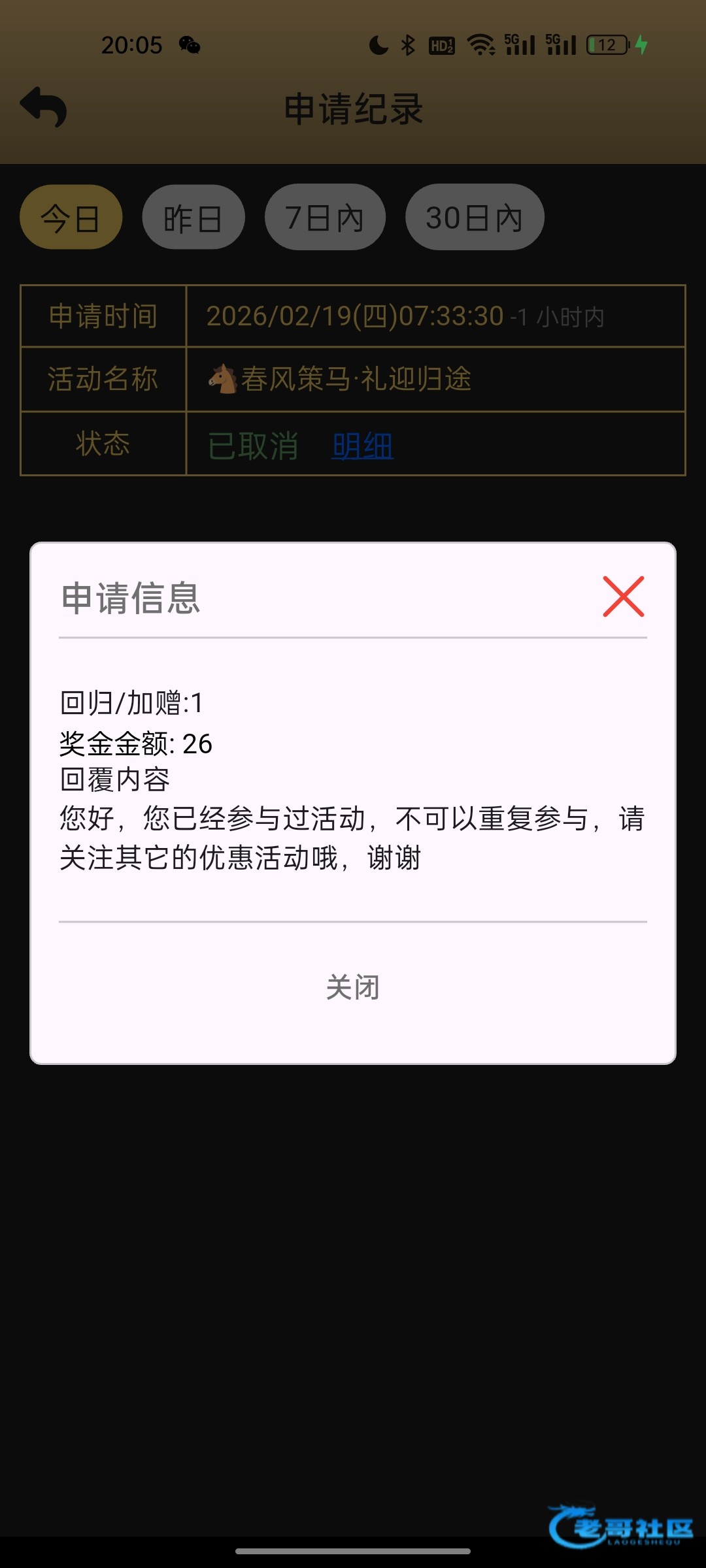 今天抢了几块钱红包,发现有点水,看到活动里面有个100+26,就存了,结果不给送,说我2023参加过回归活动,好笑吗