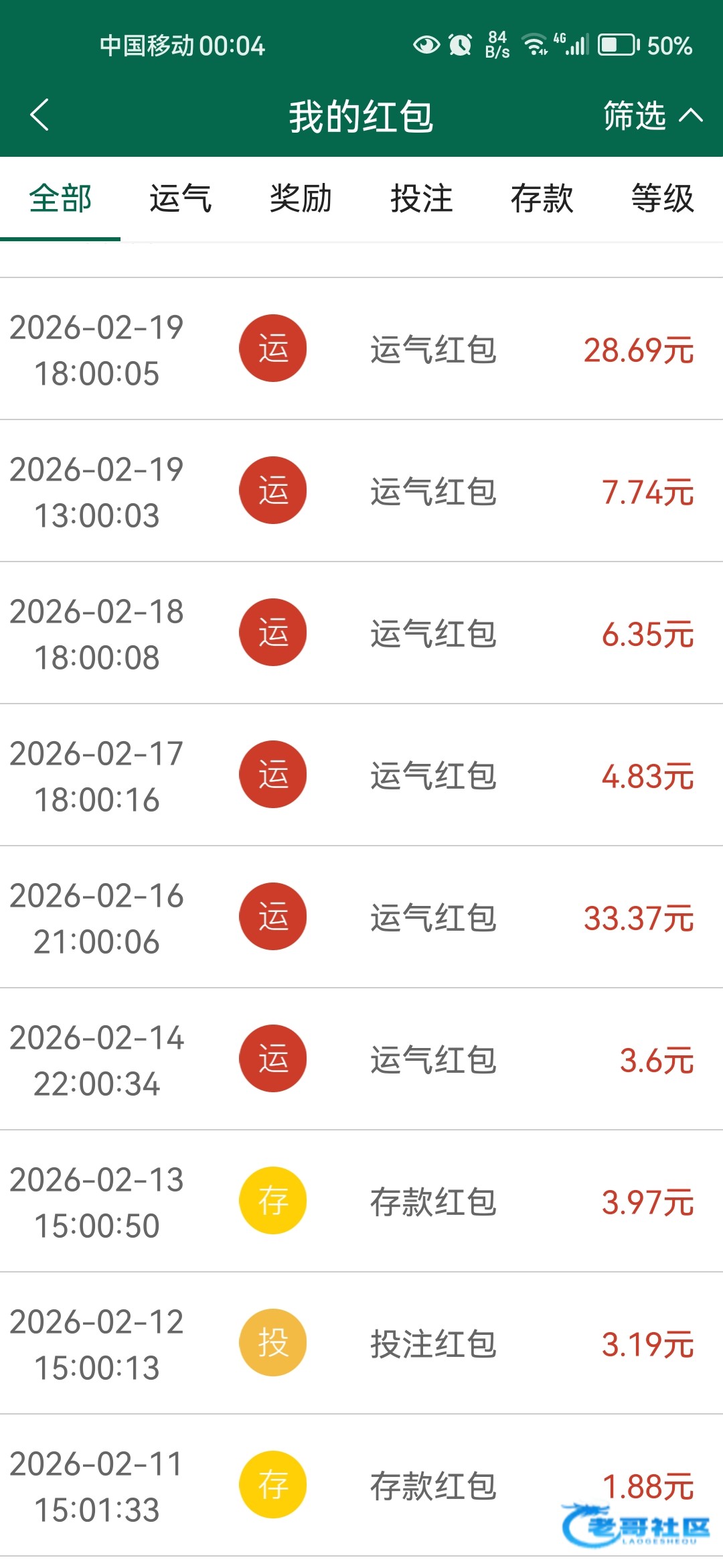 忘记抢了,,这几天应该损失几百的红包了,过年天天打麻将抢了两个50多的包1036