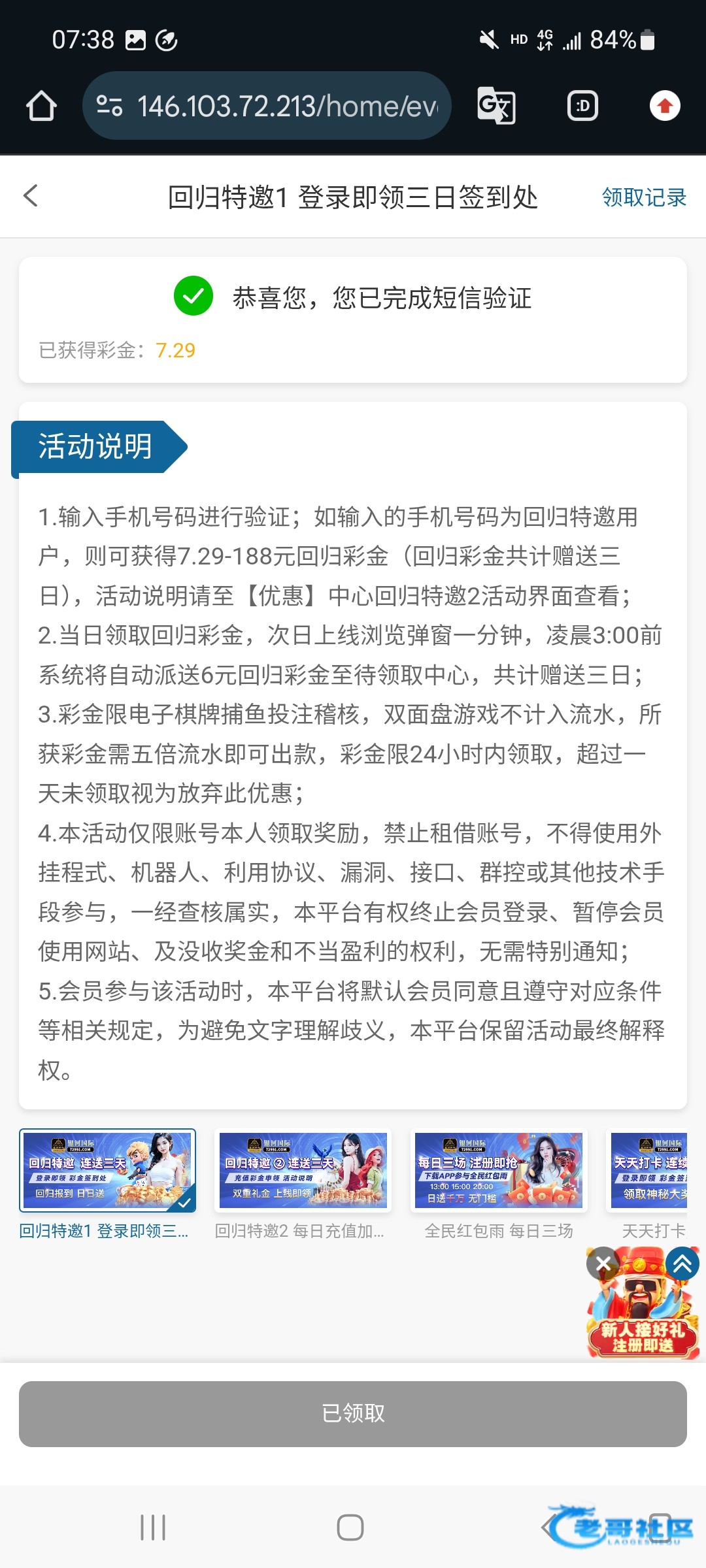 官网:72991.com新一轮回归签到礼金,上次更新,好久不是特邀回归,早上醒来试了一下,又可以领了,三日签到礼金