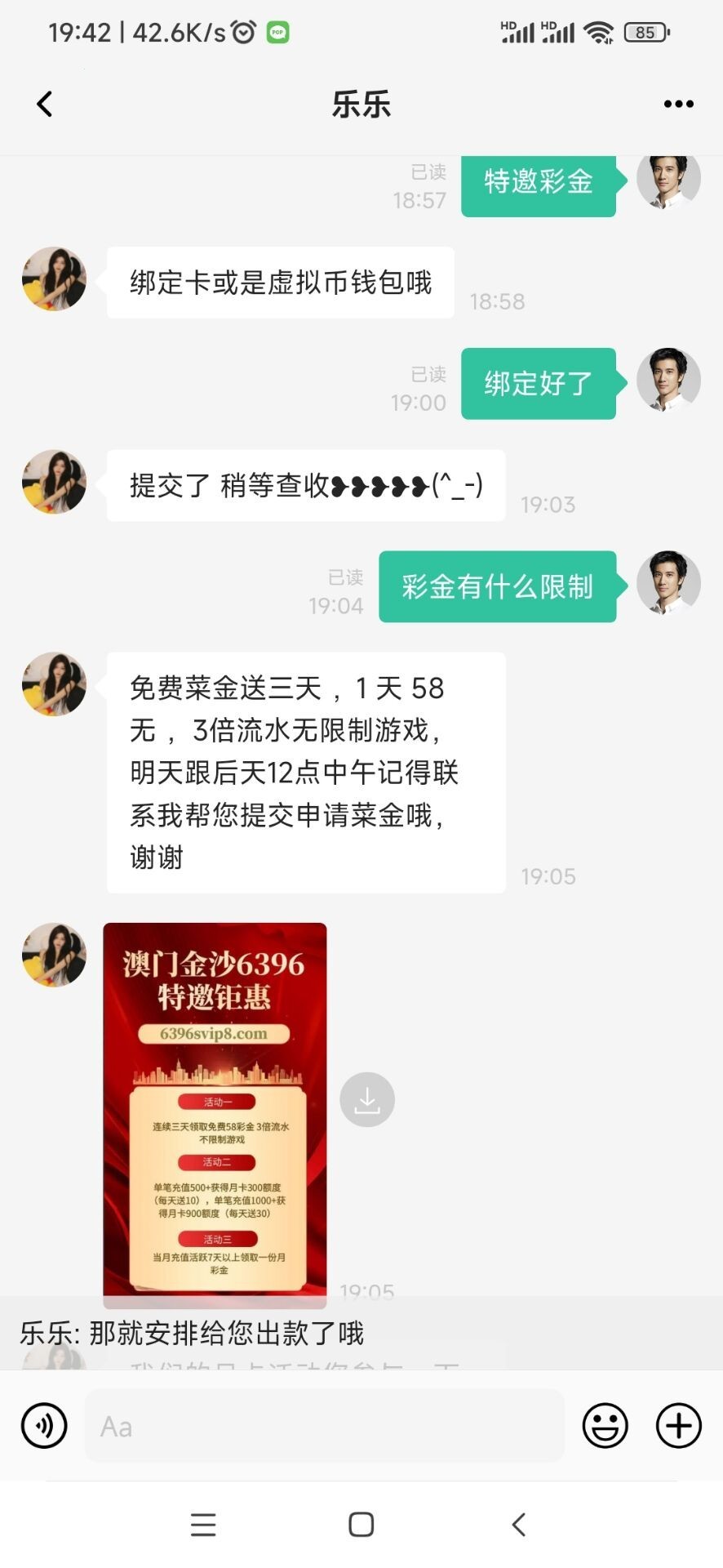 接没接到电话都可以去试试,碰到了就是三天58,第一天打出来100提了,你们自己试试,链接 6396.com