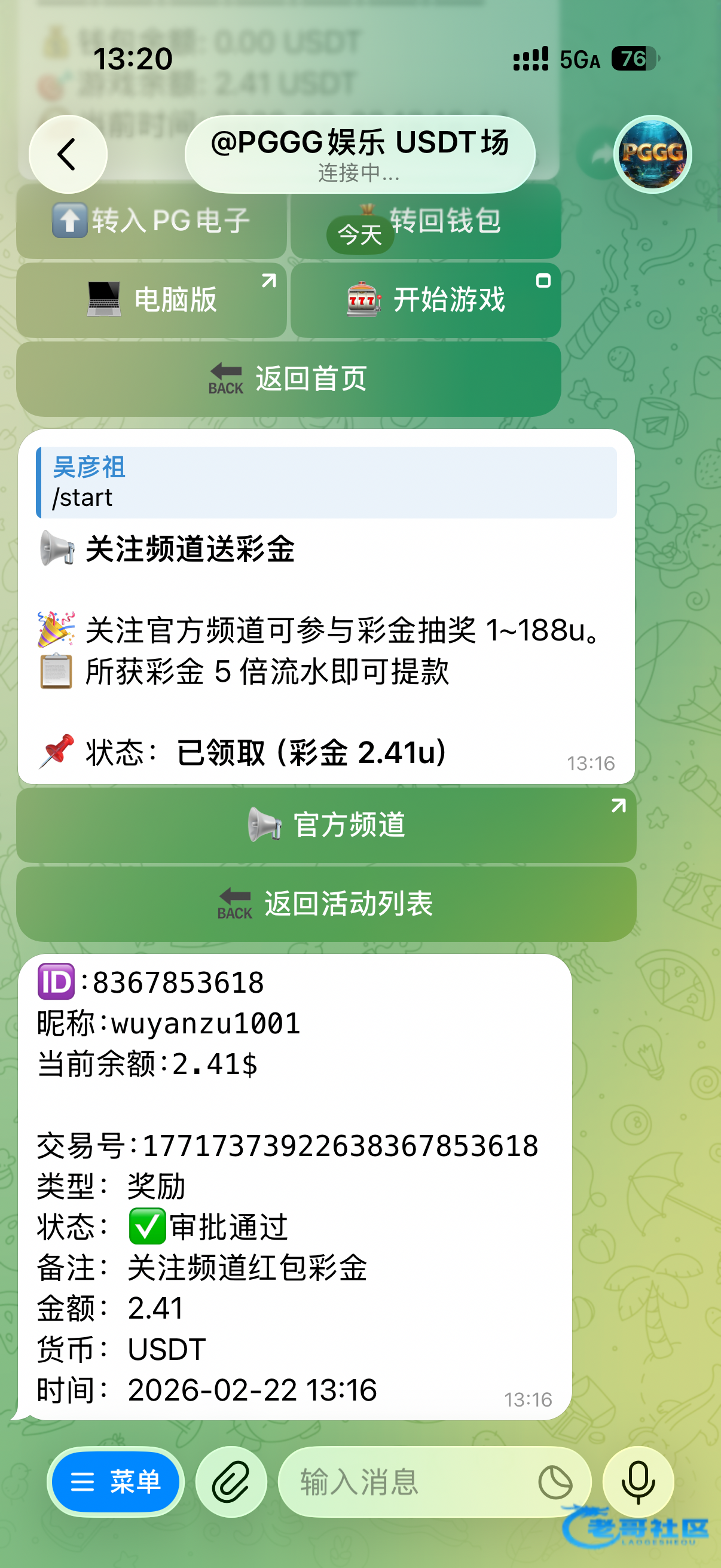 提现扣除了,电报群有几个小崽子说不限制游戏,玩了真人。