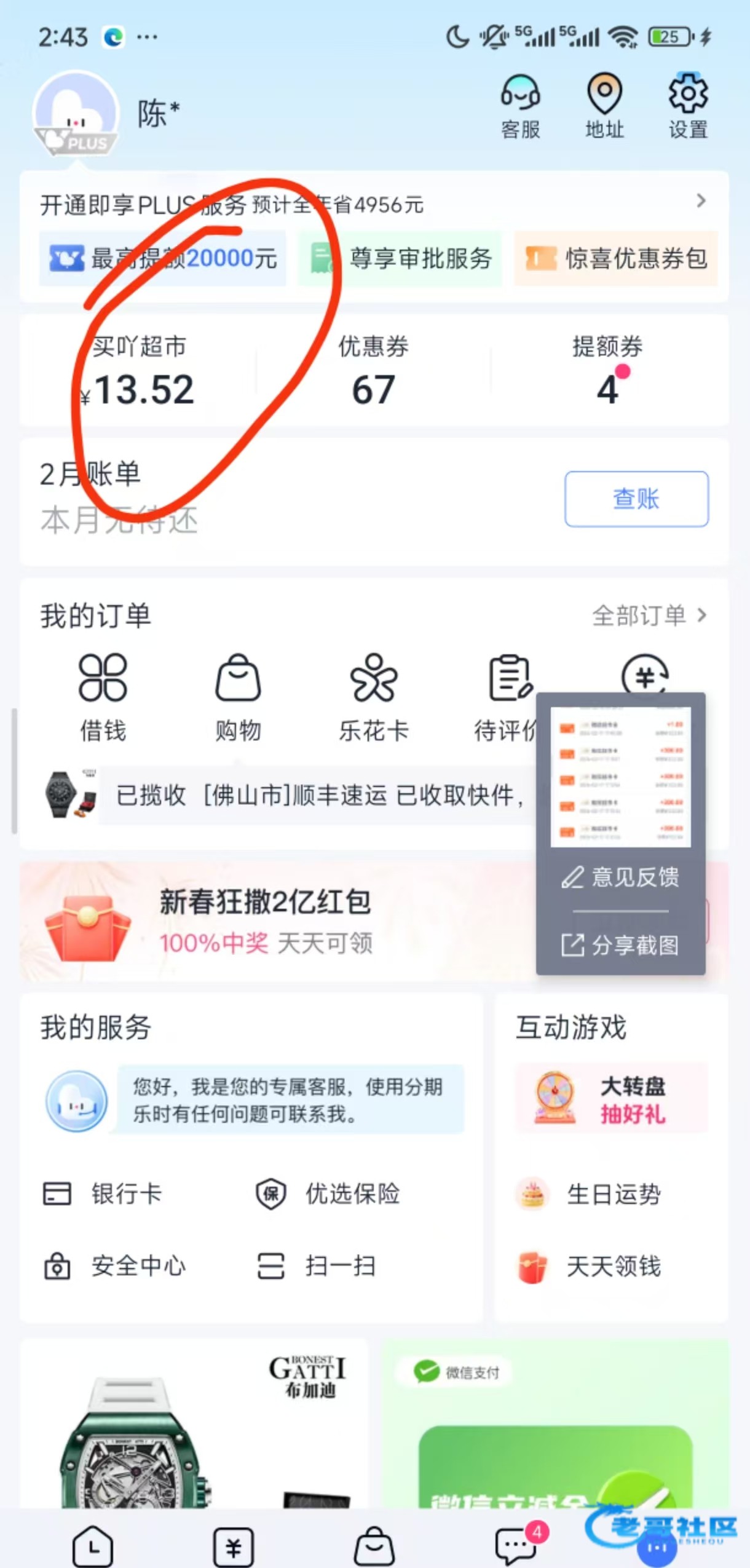 我没开会员之前开会员借款不给借我去找客服申请给我退了。然后点进超市金可以先享后付我买了2000的就买不了了。你们有先享后付的可以多撸点