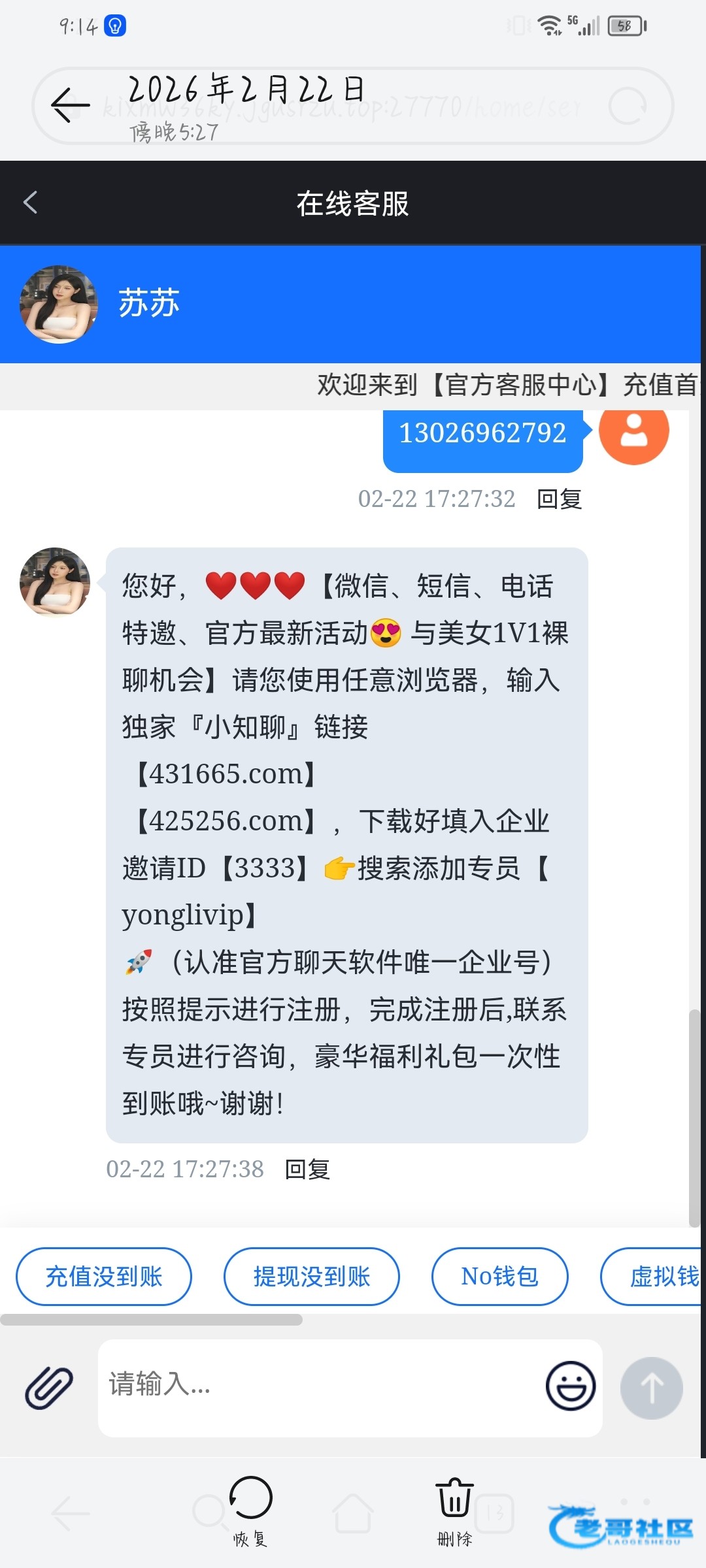 那个网站好像是英文的,下午打电话来说注册送38没送 找小知聊客服说充200送一次裸聊当时忘了保存网址小知聊软件也删了 有知道网址的一瓶牛子