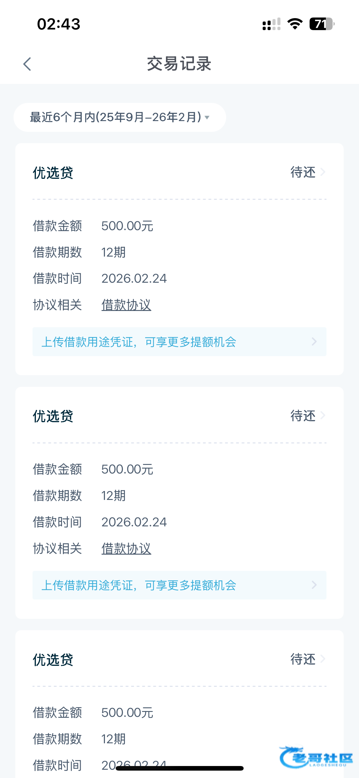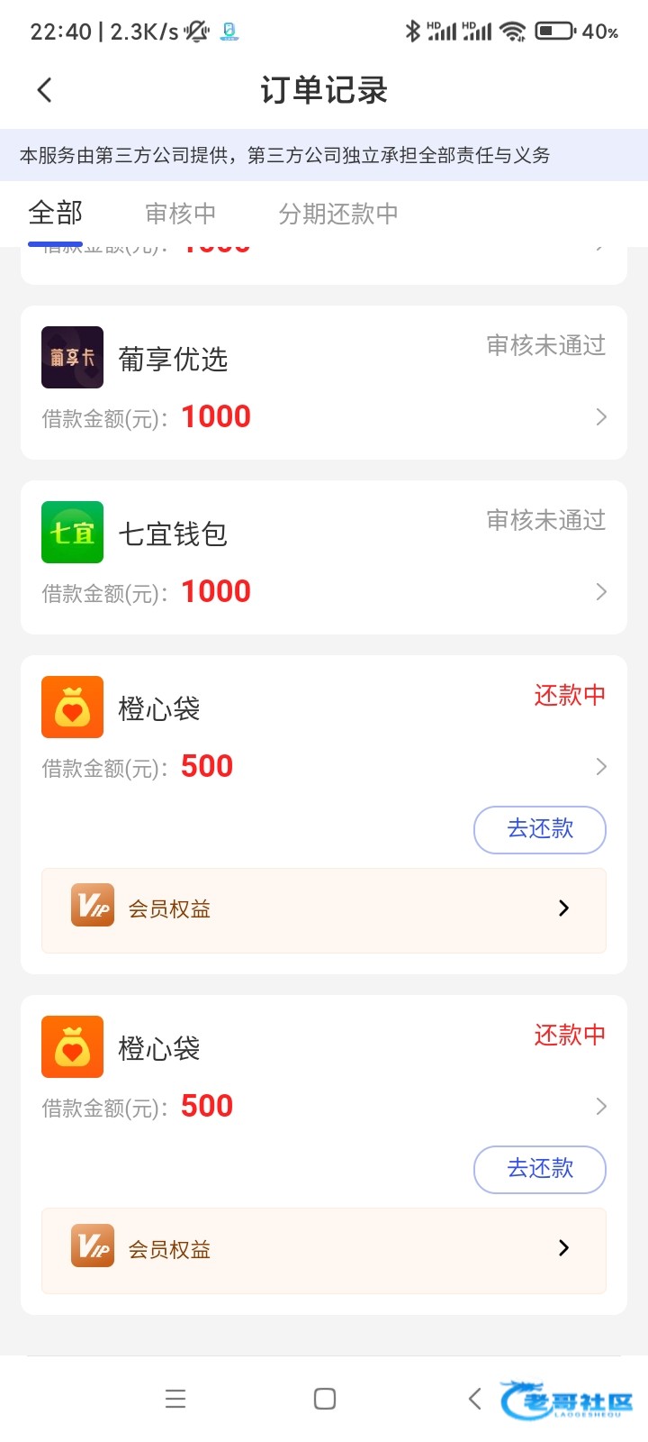下了5笔了,橙心贷还有500额度