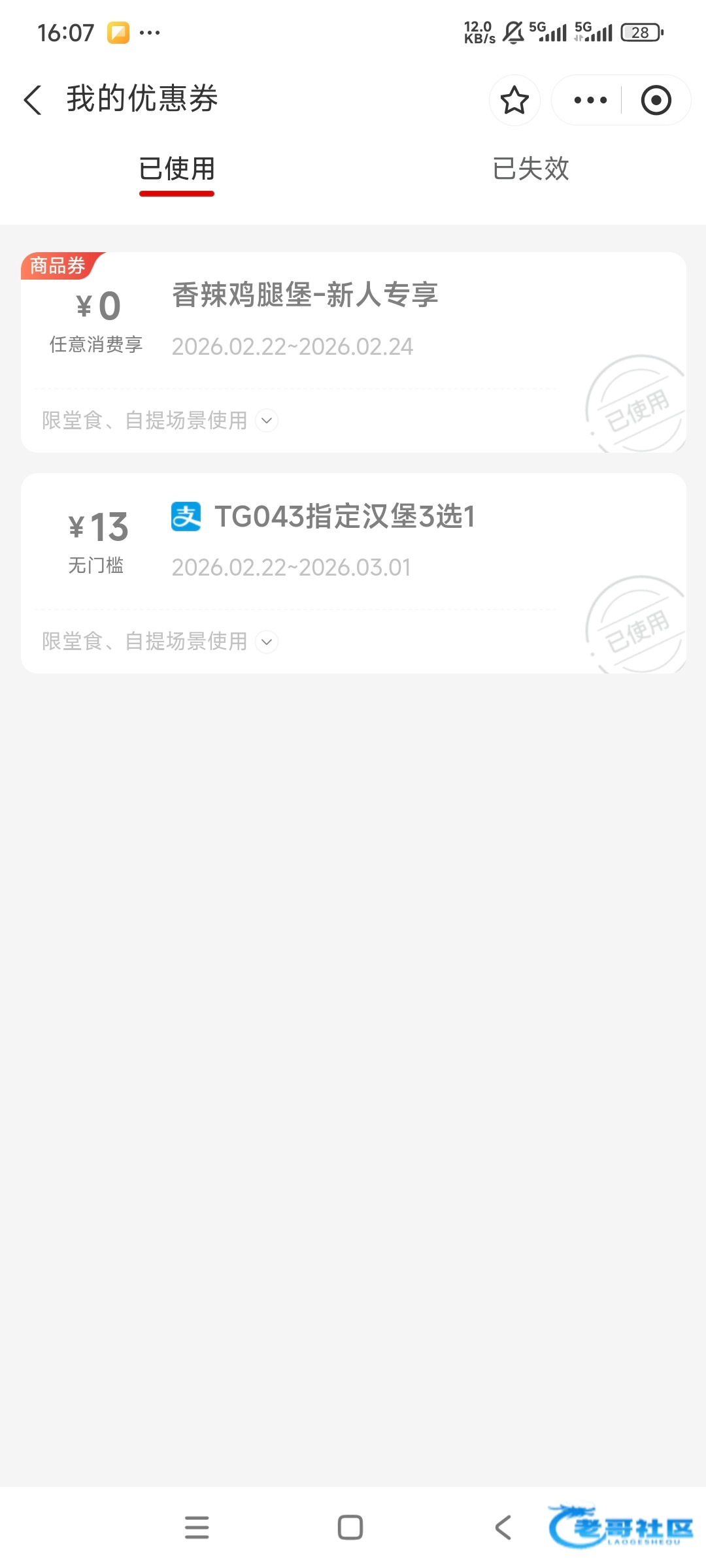 没有,俩号就一个汉堡券
