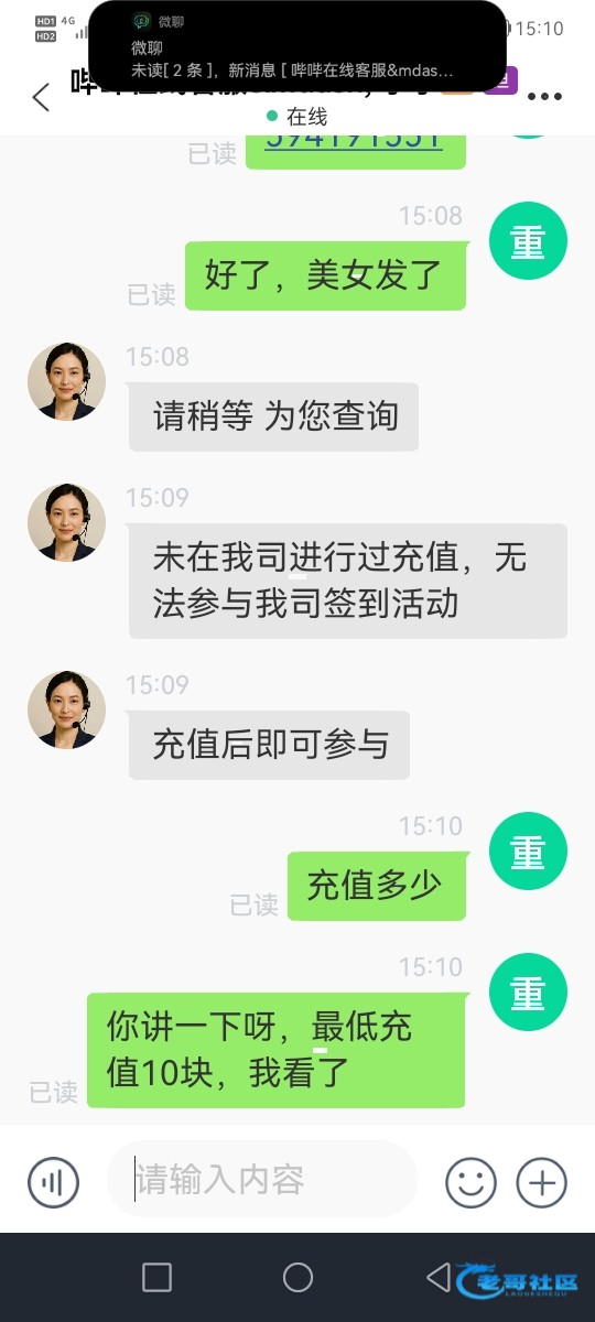 未在我司进行过充值,无法参与我司签到活动
