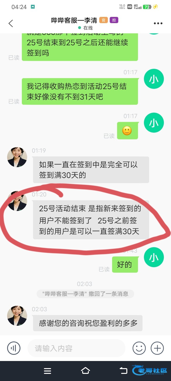这句话很难理解吗?你今天去签到就可以一直签到30天活动结束了不是不能签到了,是指合并来的新用户不能签到了,一群人图是不看的话是理解不了的