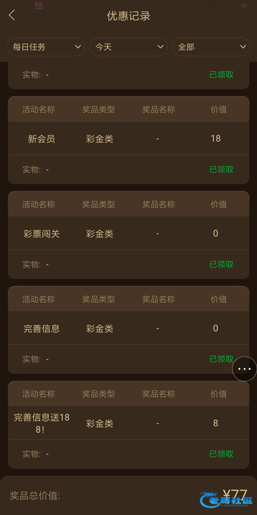 完成新人任务可领取8彩金,我出款了。