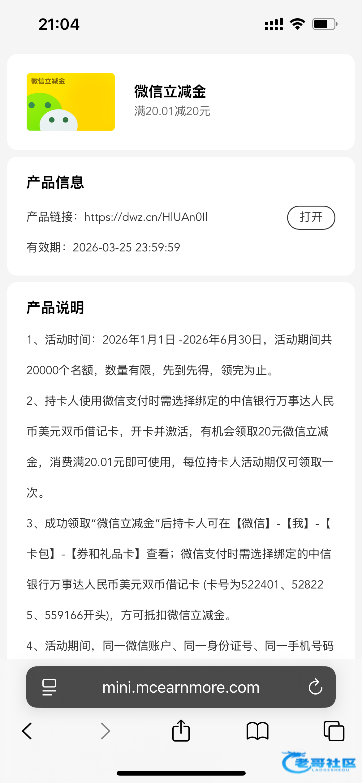 复制链接打开,输入手机号及验证码,提交跳转VX领取。链接:https://mini.mcearnmore.com/market/2024/08/zx-wxljj-ex/index.html#/