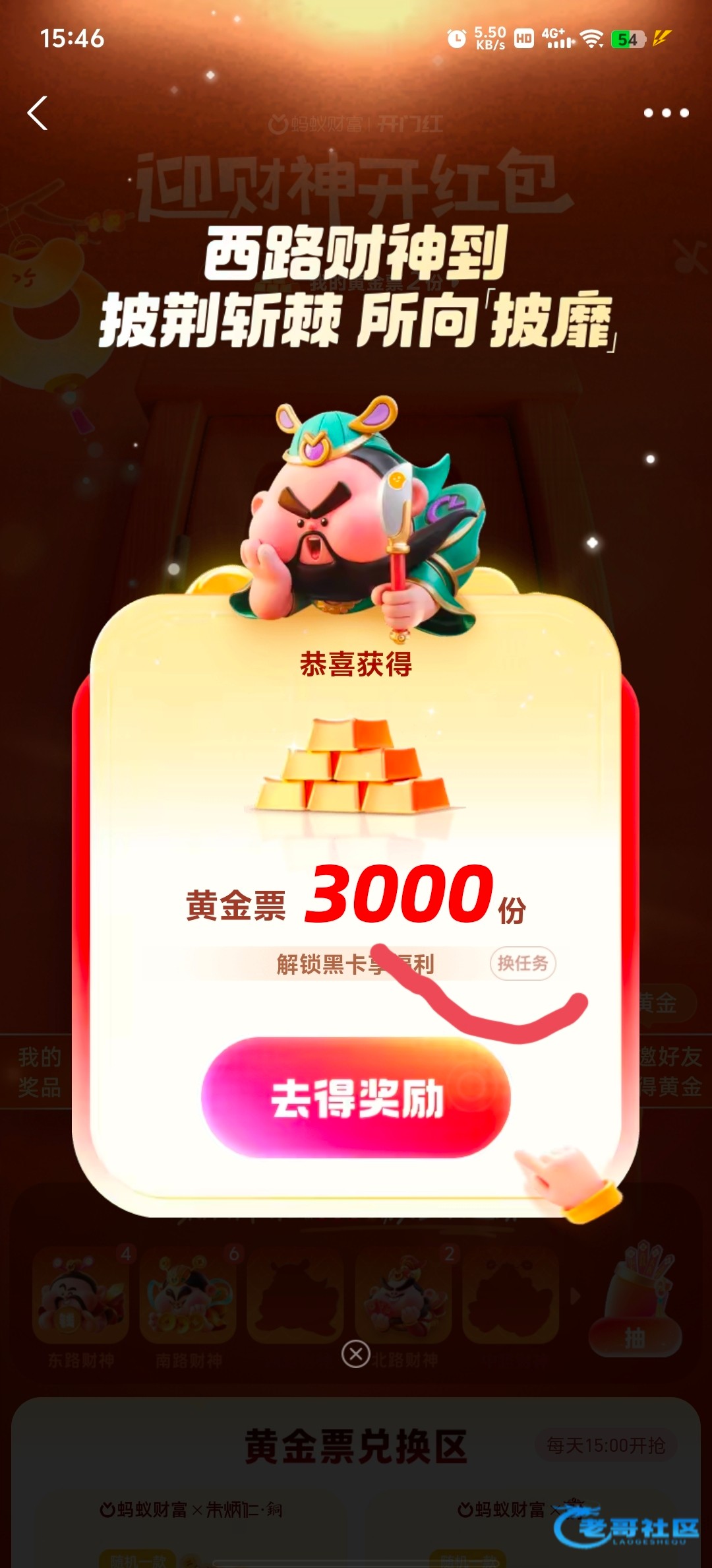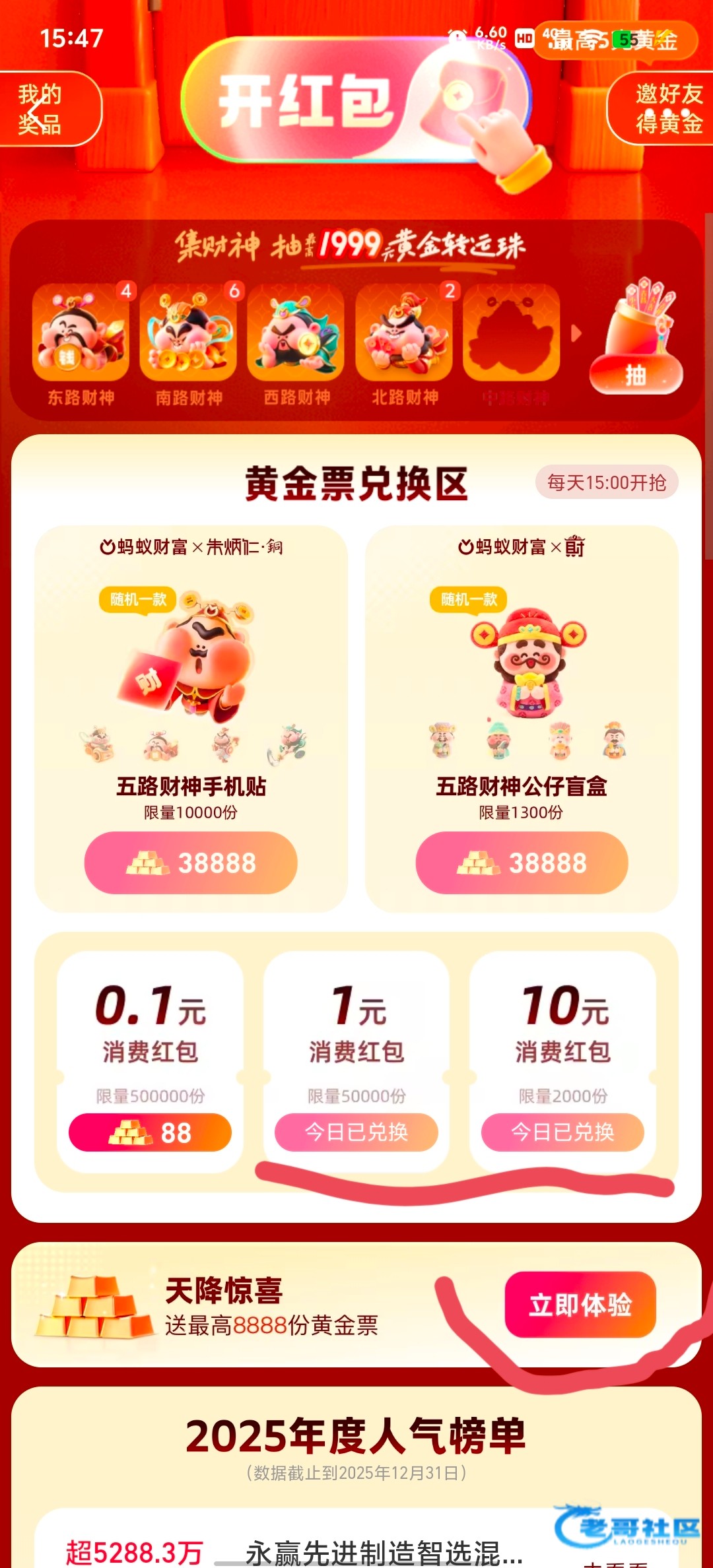 首页那个抽黄金票活动就是,没看见搜索开门红即可。然后进去下滑有一个下载蚂蚁财富送8888黄金票的一定要做,然后去开红包刷任务,任务优先做定投类任务,因为这种任务只需要设置日期定攒就完成 不需要真的转一笔什么的,完全0成本。