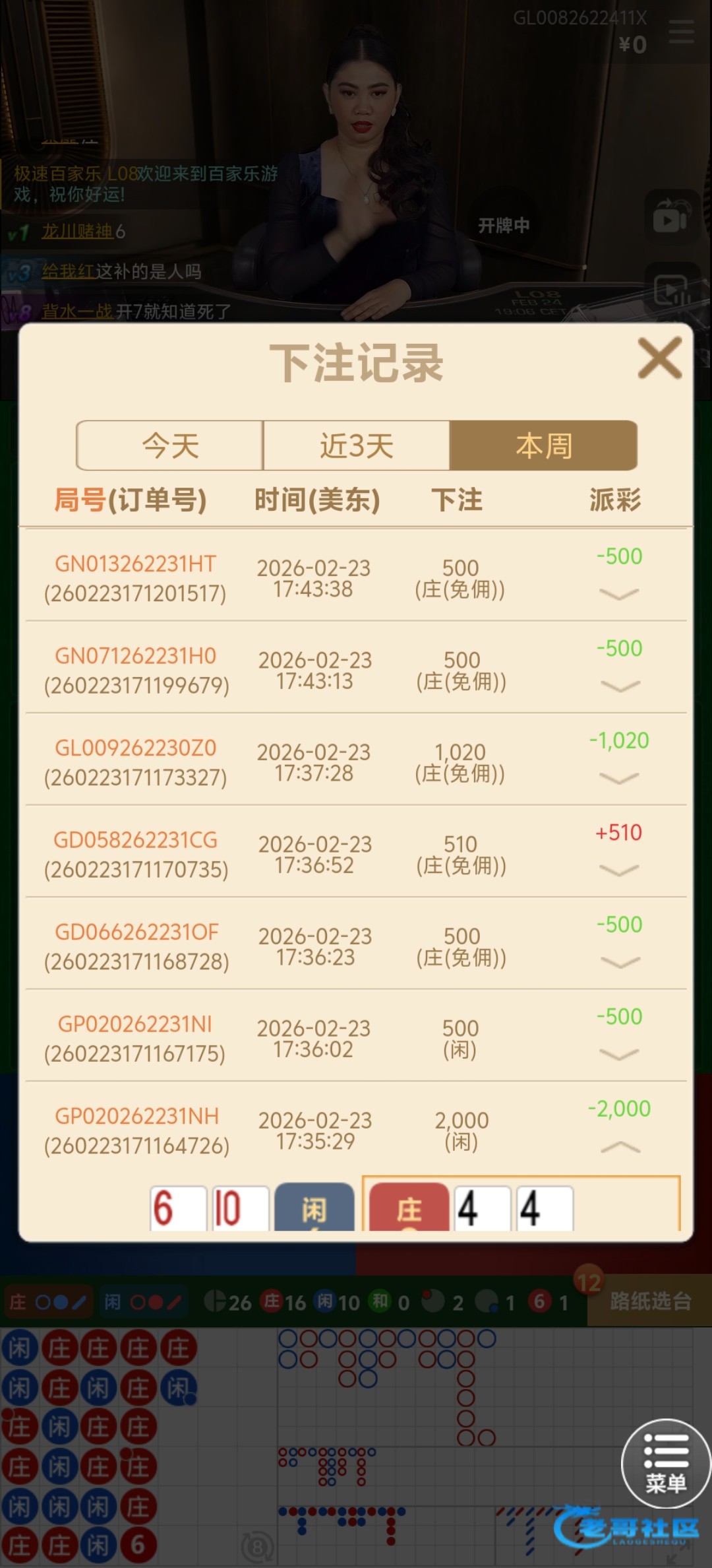 看你这下注记录,连续买庄被杀,明显是在断龙,断龙是最不好的打法。最有效的笨办法就是开啥跟啥,但是注额要逐渐减少。