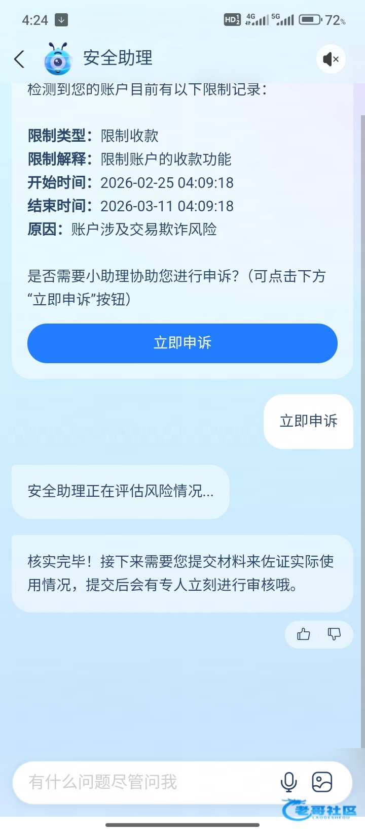 看我历史帖子,有发过这种风控解除