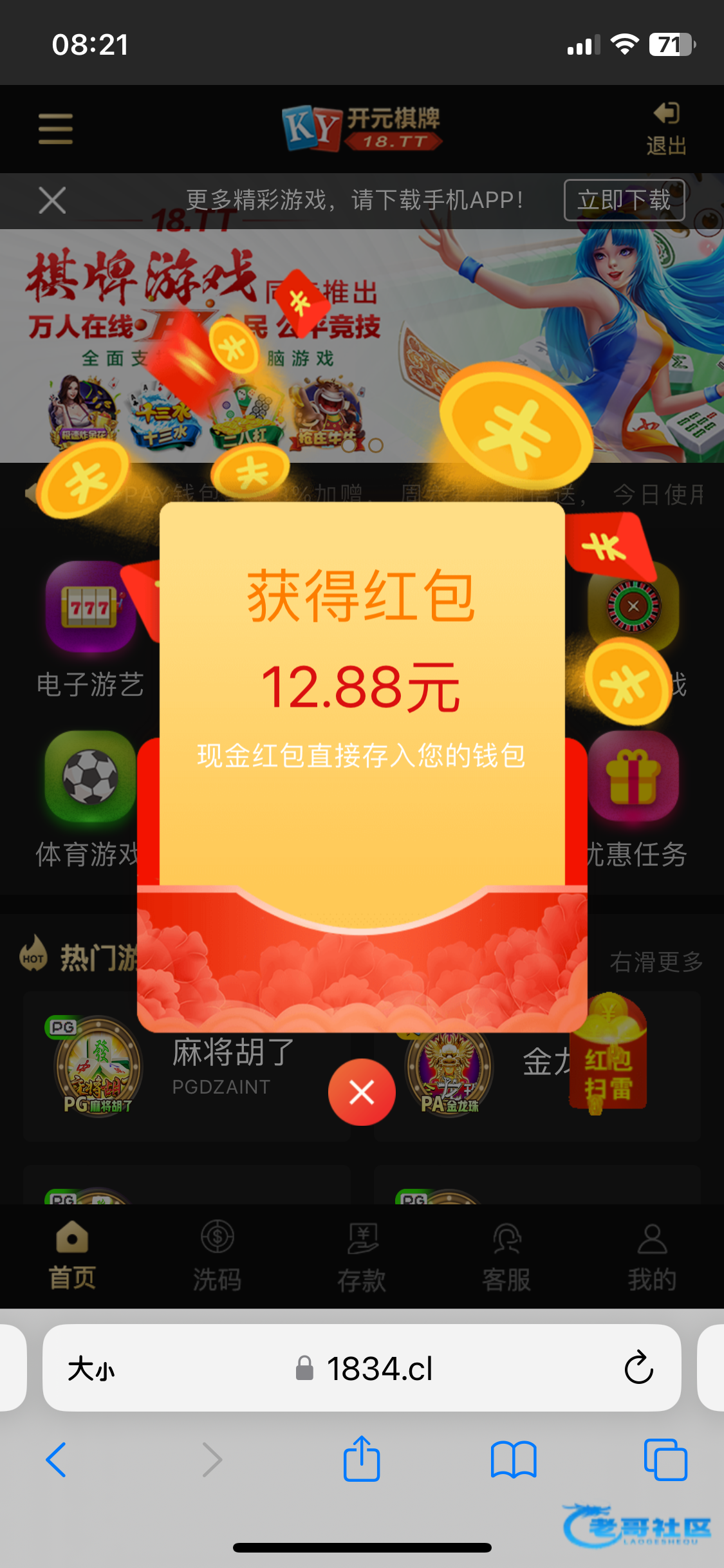网址:18.tt 我很久之前充值过1000多。登陆上去就有红包。没充值点无视。白嫖即可