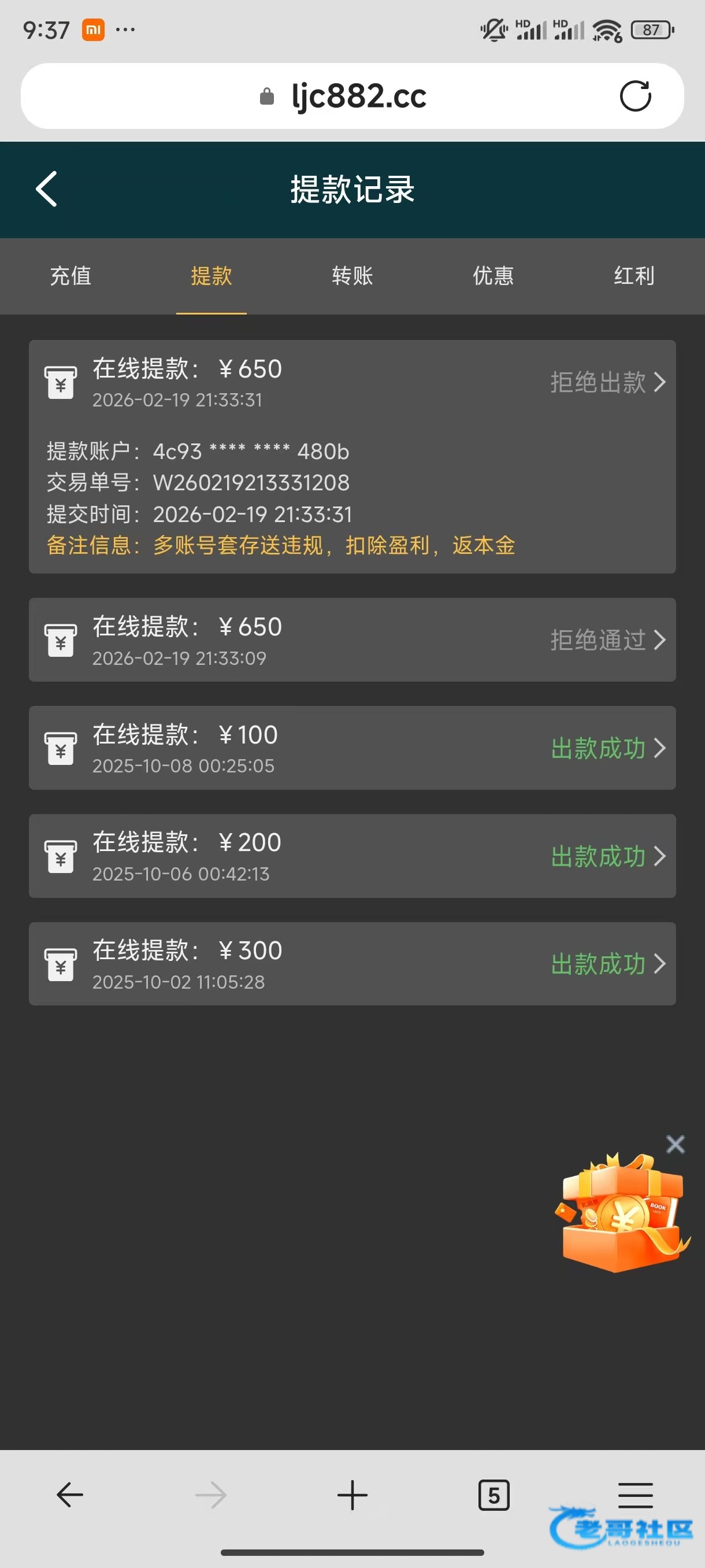 过年领优惠打了六百多,提款说我套利,这畜生台能白嫖就白嫖,不要充值!