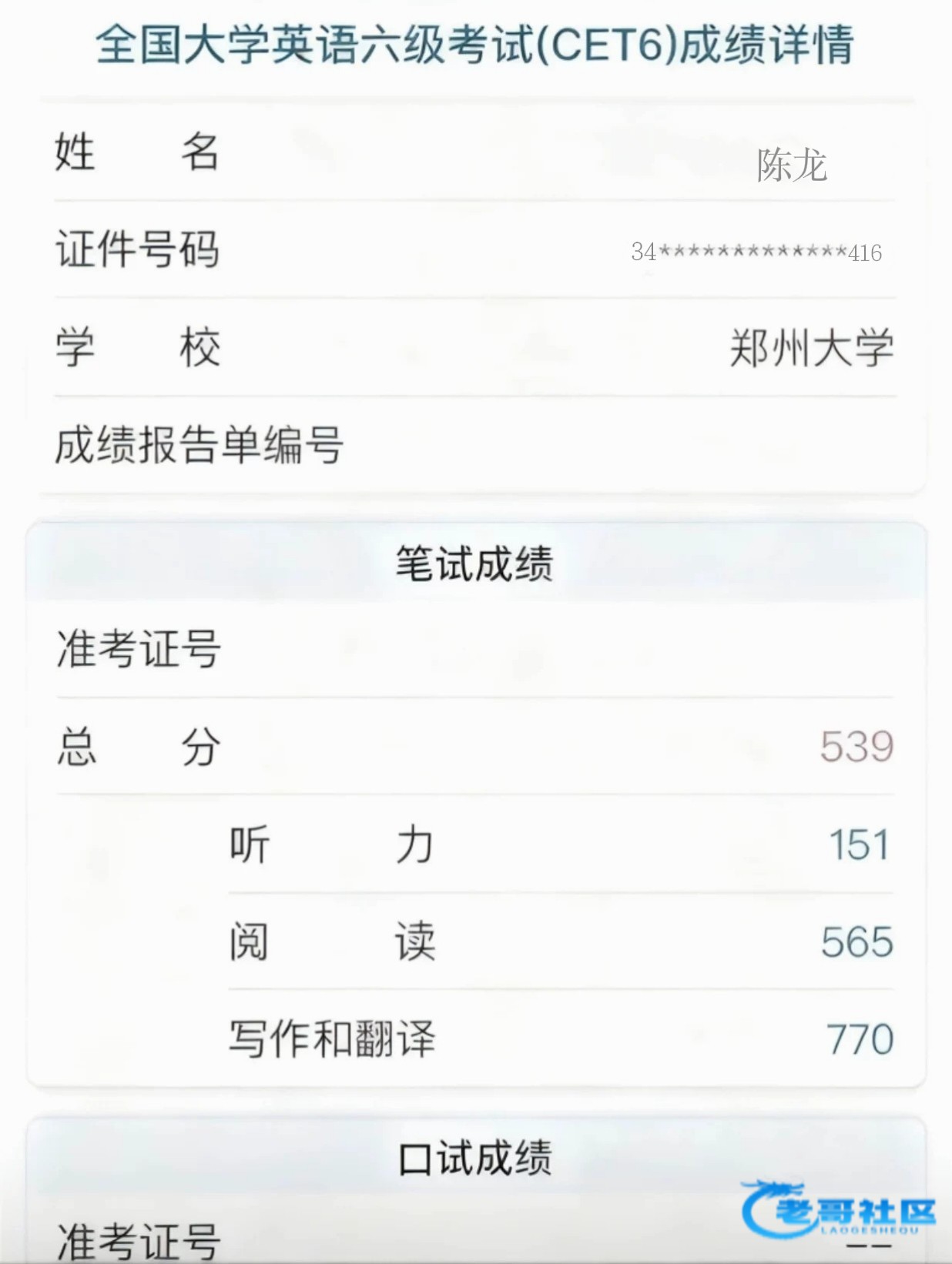 3.英文6级考试可以用醒图app自行p图用消失笔把上面名字给清理掉醒图选择文字找到基础里面的上海宋体或者书宋简体然后样式选择黑色然后字体透明度拉到43到50就行就是上面图差不多字体身份证前2后3一样的自己p