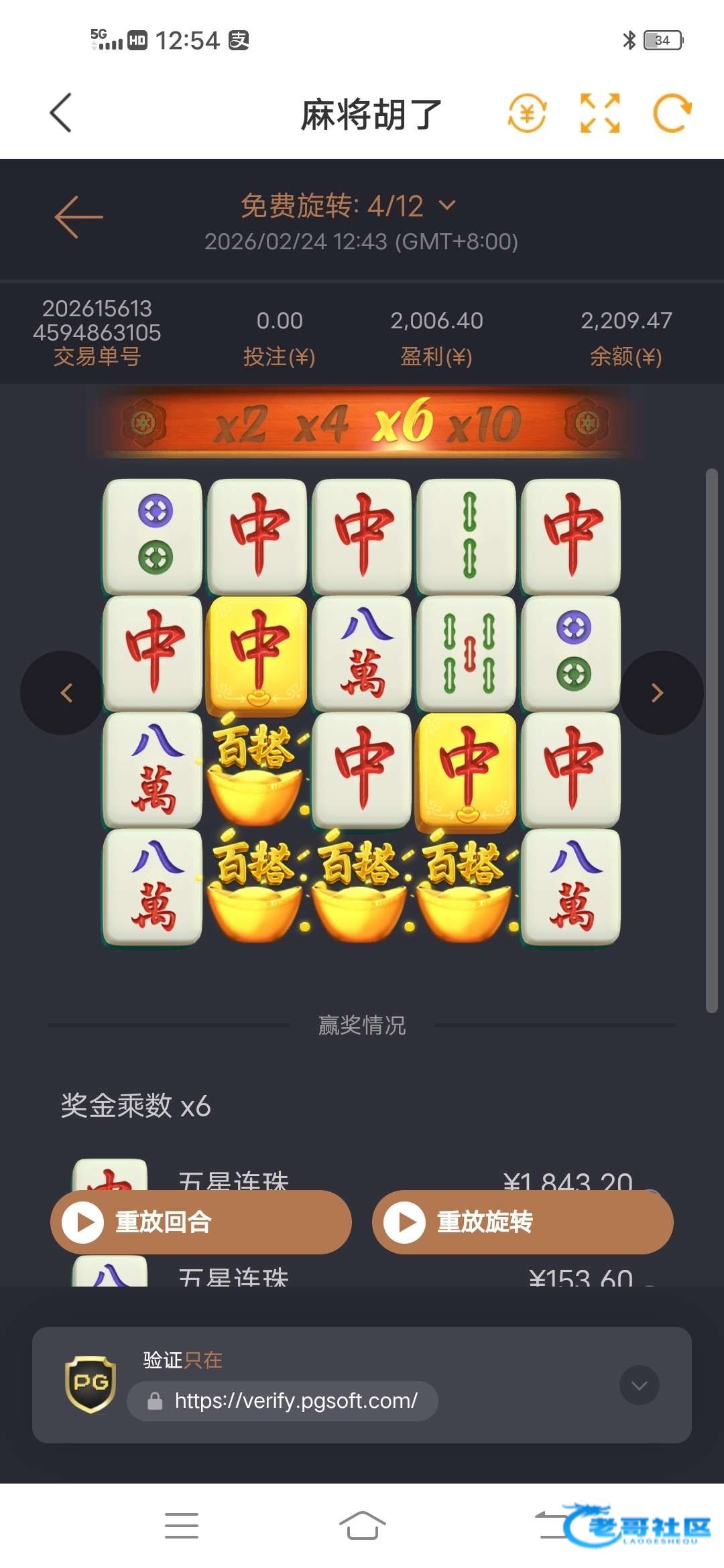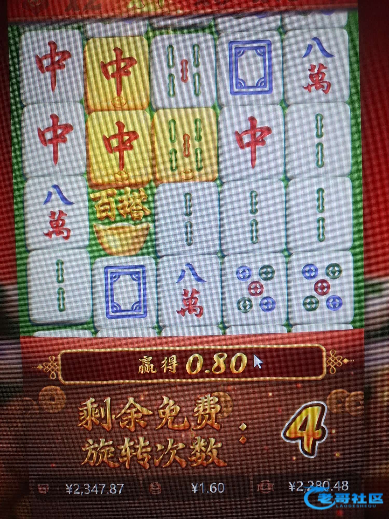 多一个红中多不少倍啊,只中过十倍九个红中才六百多倍 还有两个金色的