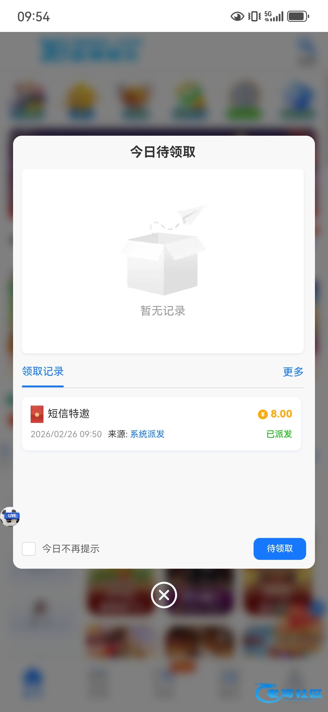 刚收到短信,领到8
