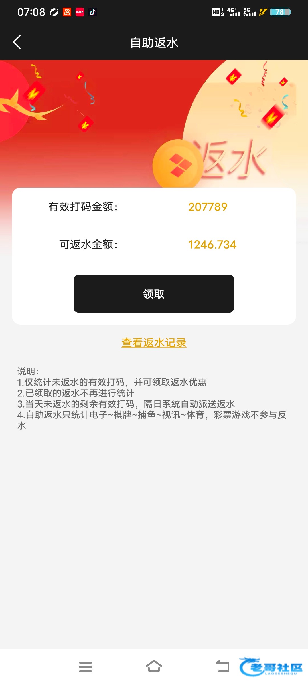 充1k干了7700,返水和奖励啥的估计还能领个2000多