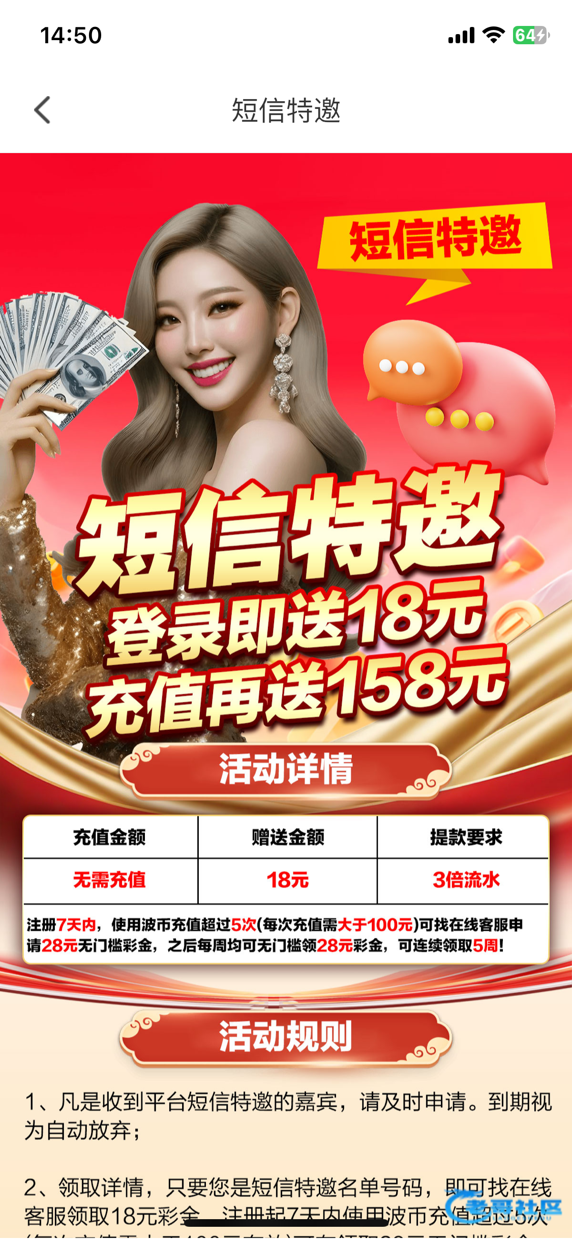直接给他说电话特邀发手机号查询,要是不在就去活动里截图那个短信特邀活动给他,我两个都碰到了,没打出来,打出来的团个饭。2166a.tv
