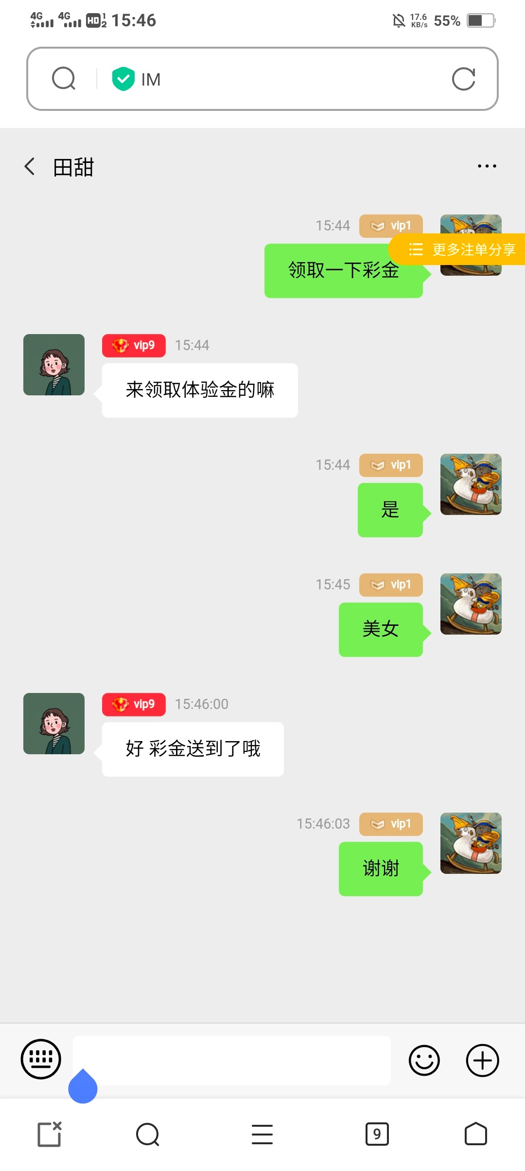 人多注册好了发她号等她忙完了就送了