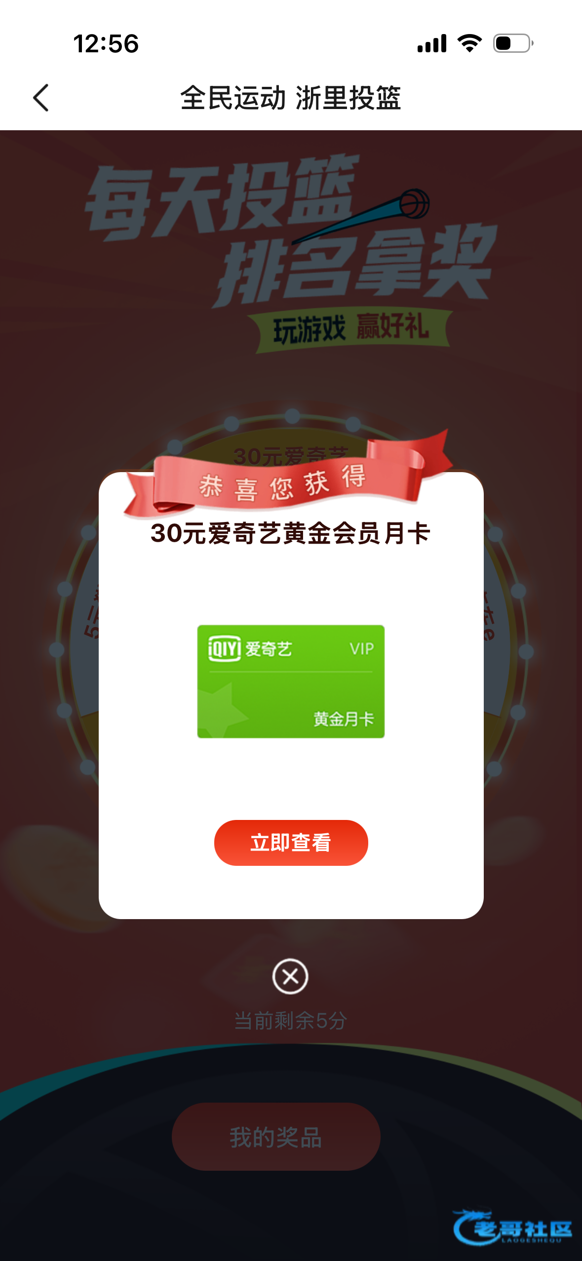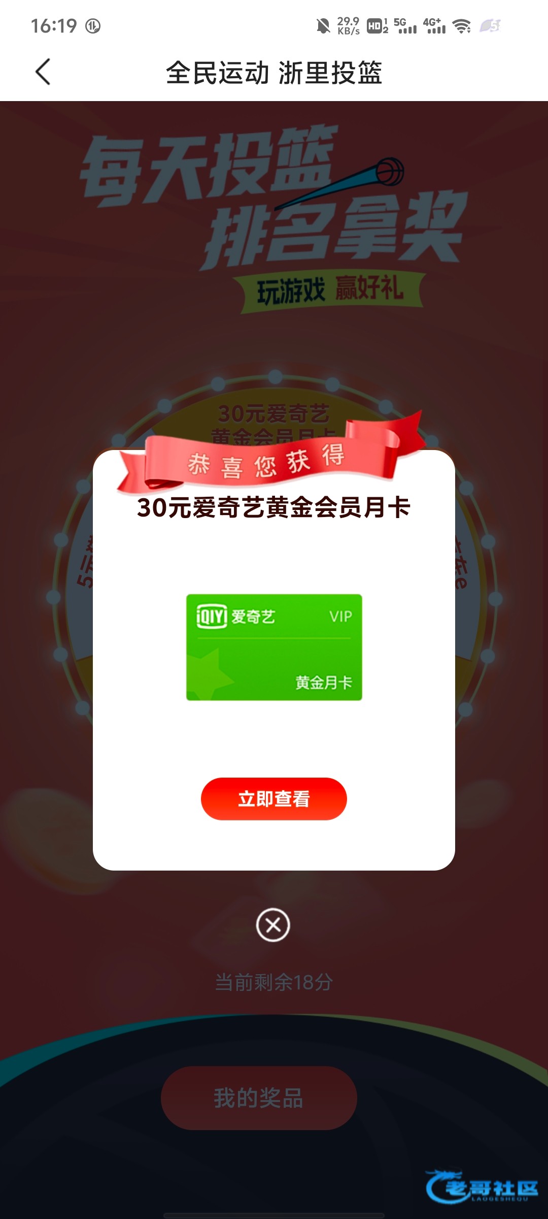 丰收互联全民运动浙里燃情投篮赢奖品活动
