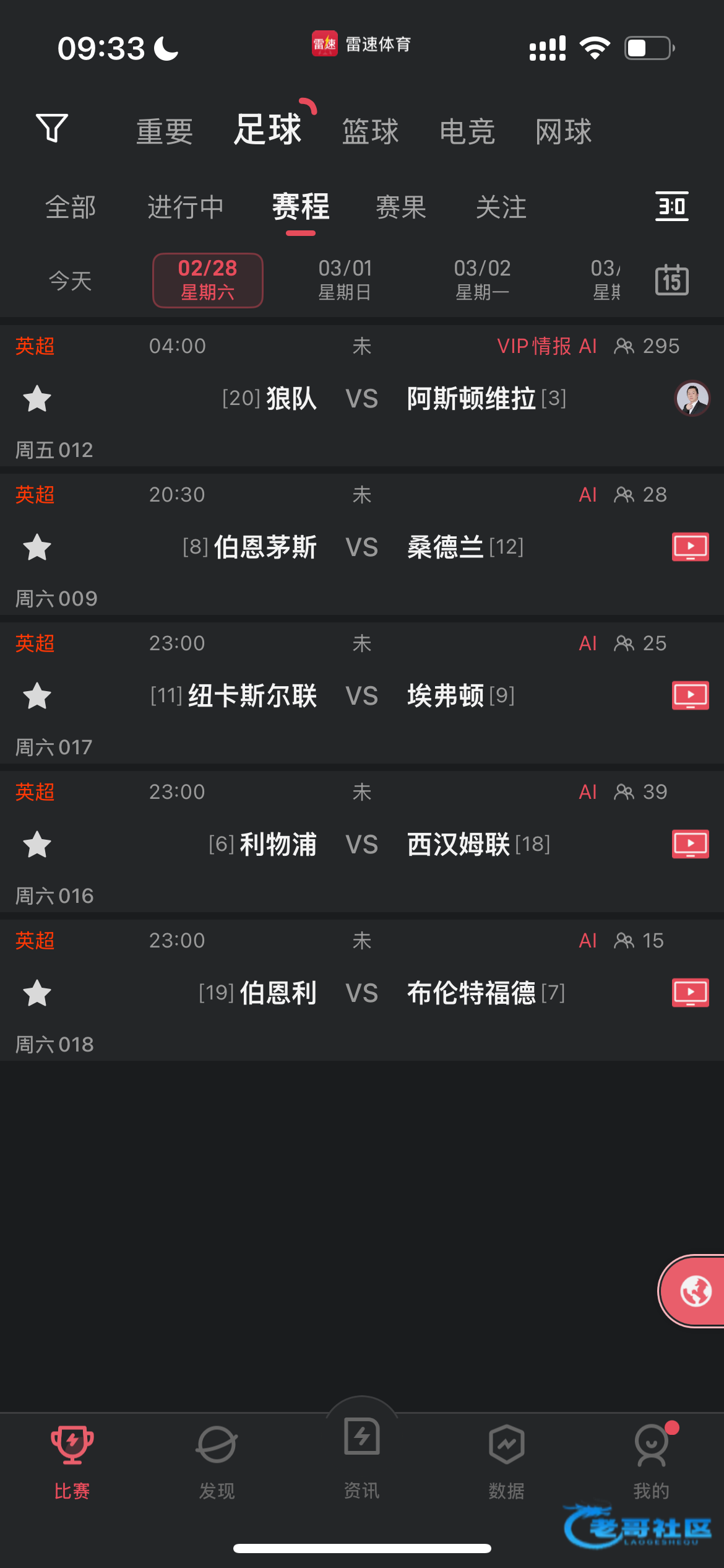 今天的英超比赛