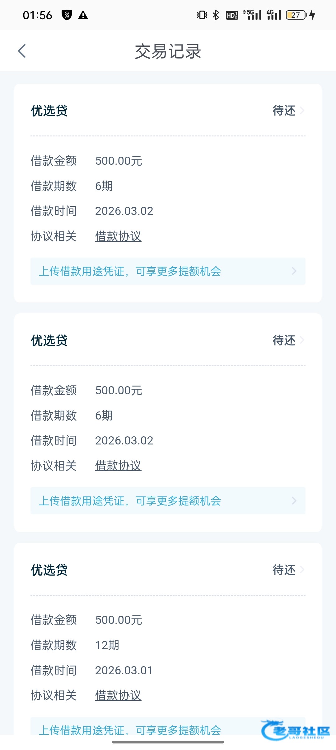 昨天晚上10点申请的然后今天凌晨一点半到账后面两个都是几分钟到账
