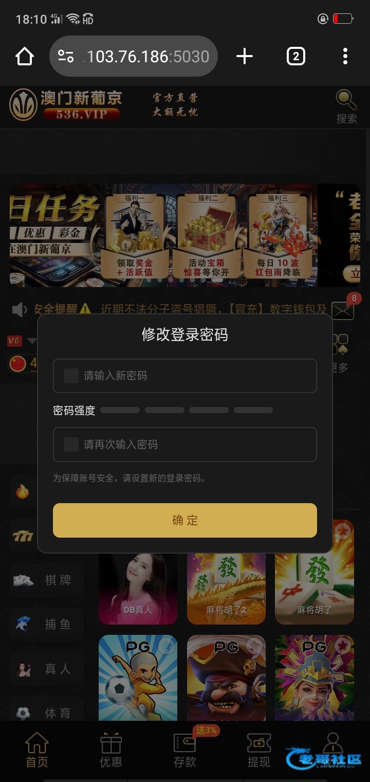 澳门新葡京536.vip ,自己充50提450黑款,清除账号里提款方式,中途改了我两次密码,(我绝对确认密码是我刚改的又被他们改了)第一次我验证码找回来了,第二次要了我手机号,把我手机号拉黑了我收不到码,非常之牛逼的台子 并且设备一直登出,设备网络也拉黑