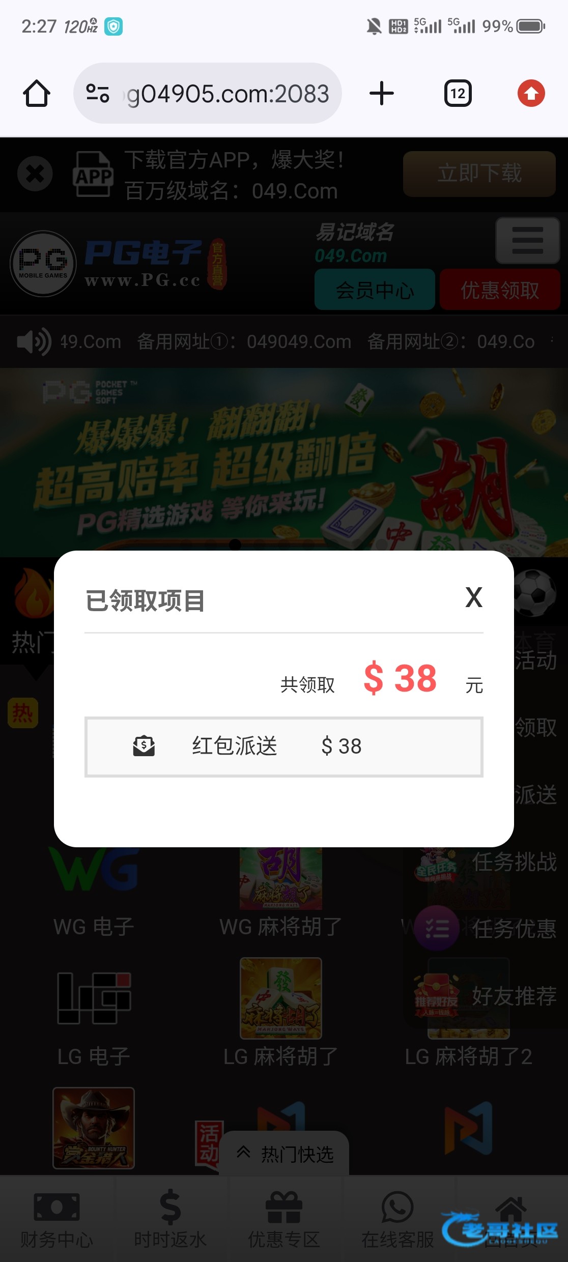Pg.cc刚登陆看了下,有就是一键领奖