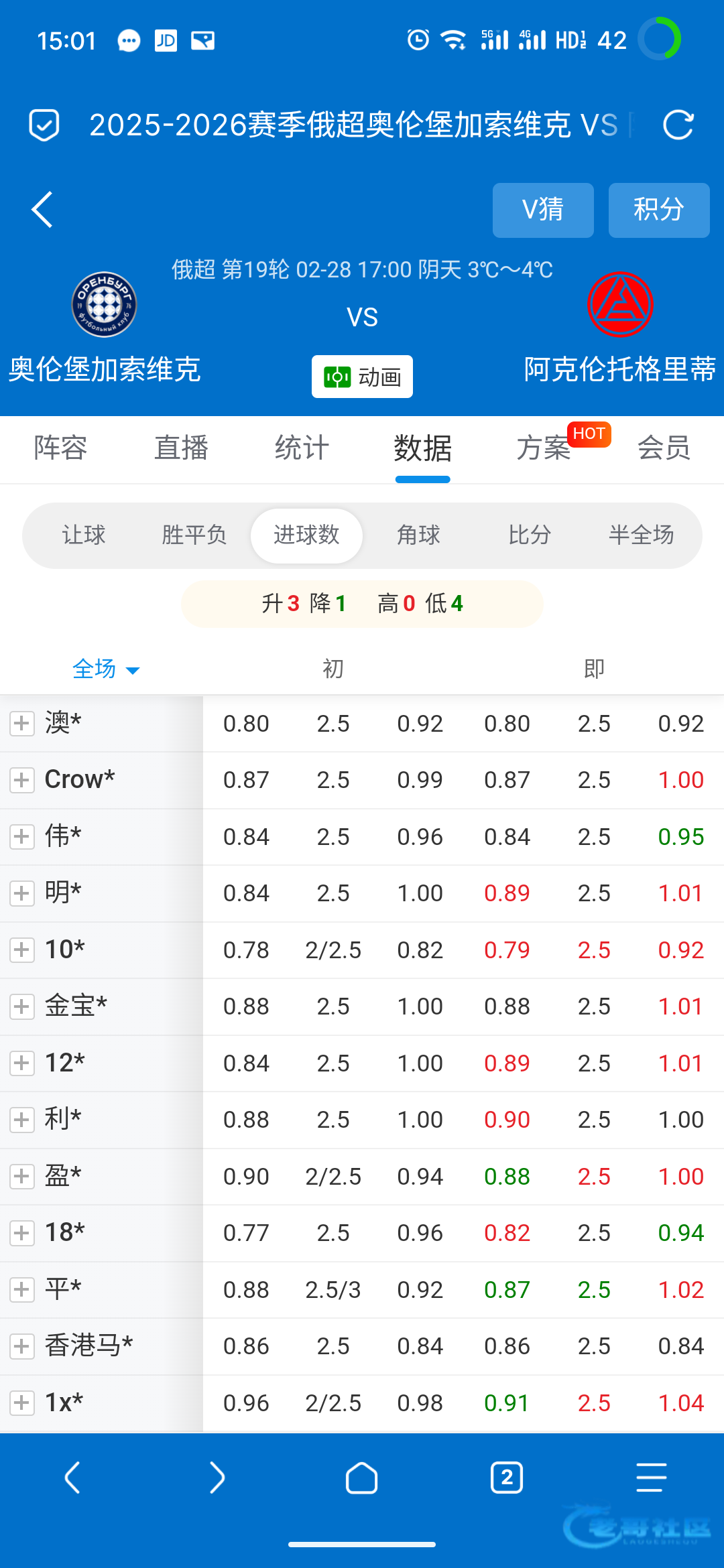 5点的俄超看平,比分1:1