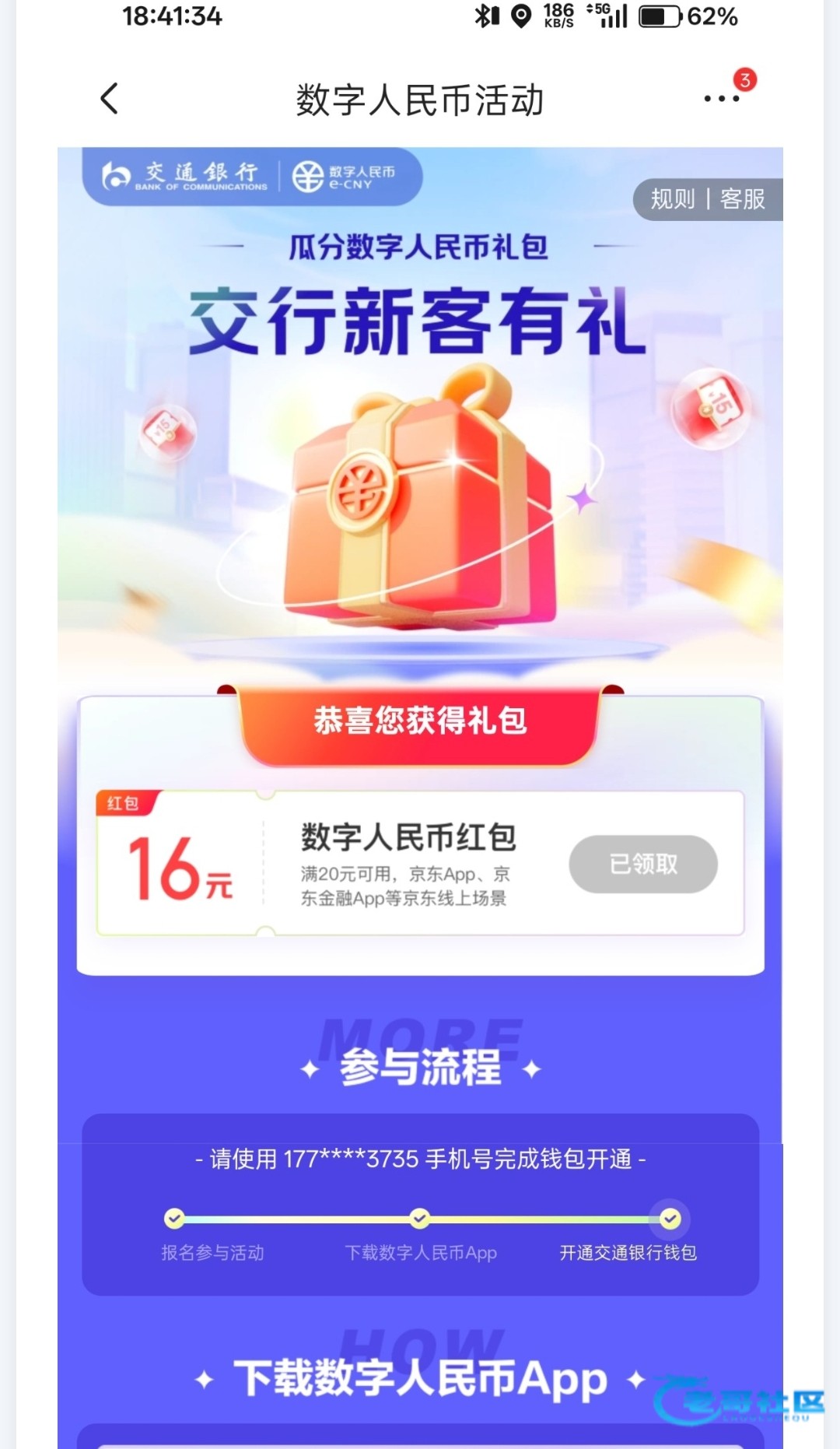 人人白漂16红包,多号多撸,京东 APP搜索数字人民币,点进去领取红包,然后数字人民币里面开通钱包,开通好了就可以到账 16 红包,满 20 可以用,钱包不用实名,一个号可以领一个红包,可以用已实名的钱包往没有实名的钱包里面转,然后去京东买卡密 20 的,卡密变现支付宝红包,或者可以买其他东西,一个号润在 13-15 左右