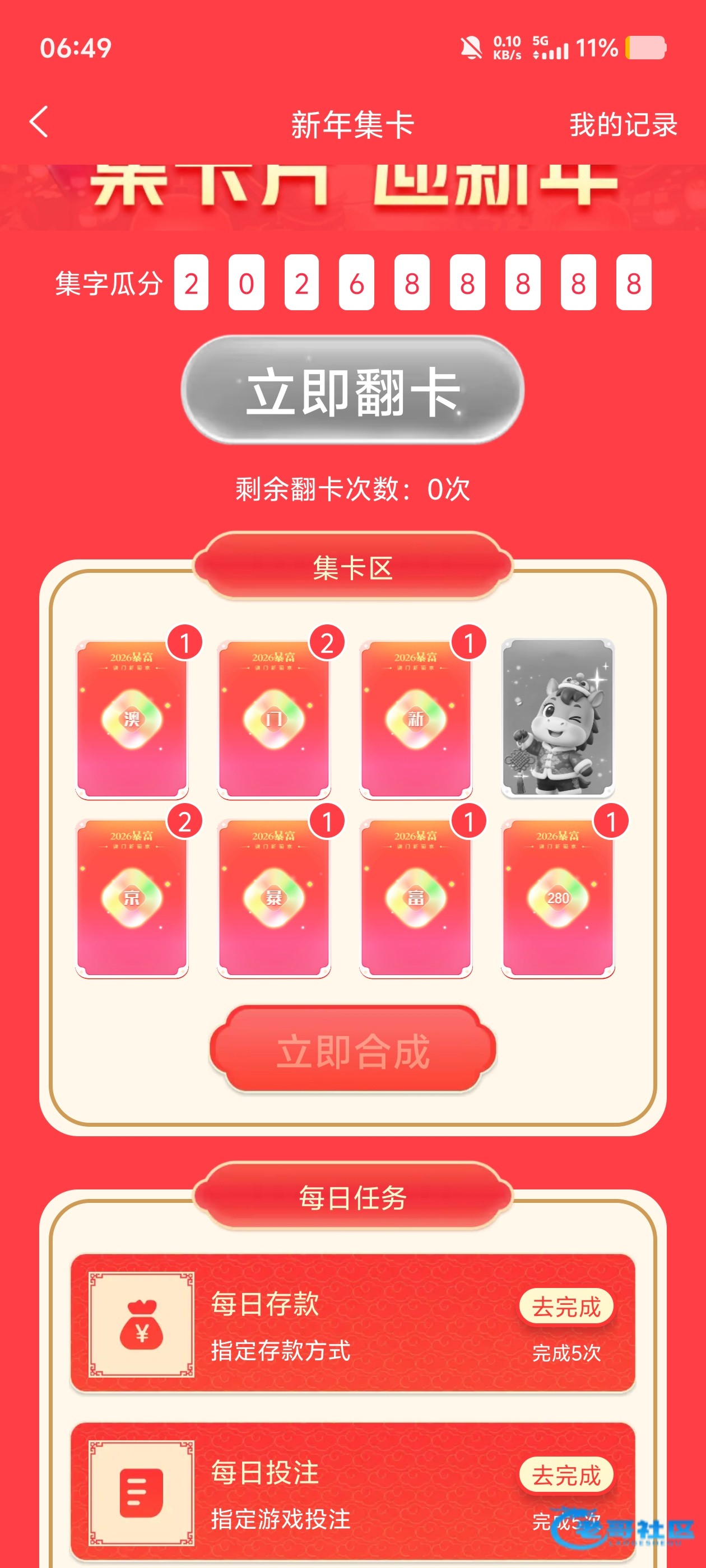 这个傻逼280,是不是故意的,活动马上结束了,就是还差一张,还翻到一样的,我日了