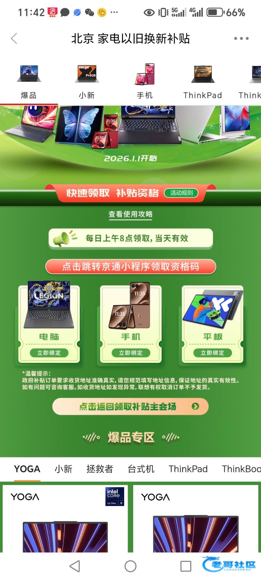 下载幻影分身登录微信,定位改北京扫码领取优惠代码,实名很简单就扫个脸就行,然后在下载联想app绑定优惠券,我前几天70出了,现在好像100多一张了
