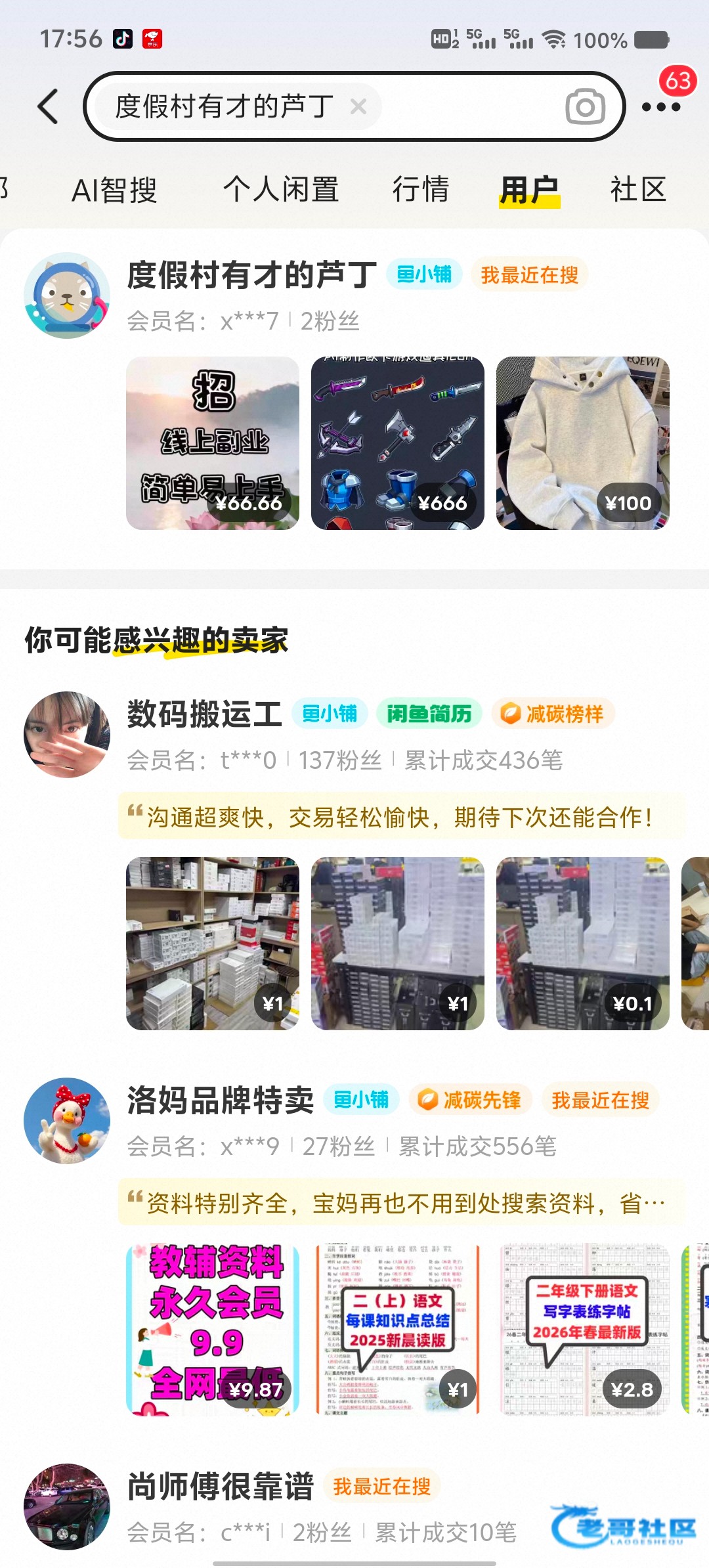 闲鱼搜:木星聚会的粟米,江南续烟雨,度假村有才的芦丁,三个账号都可以撸,都可以进app