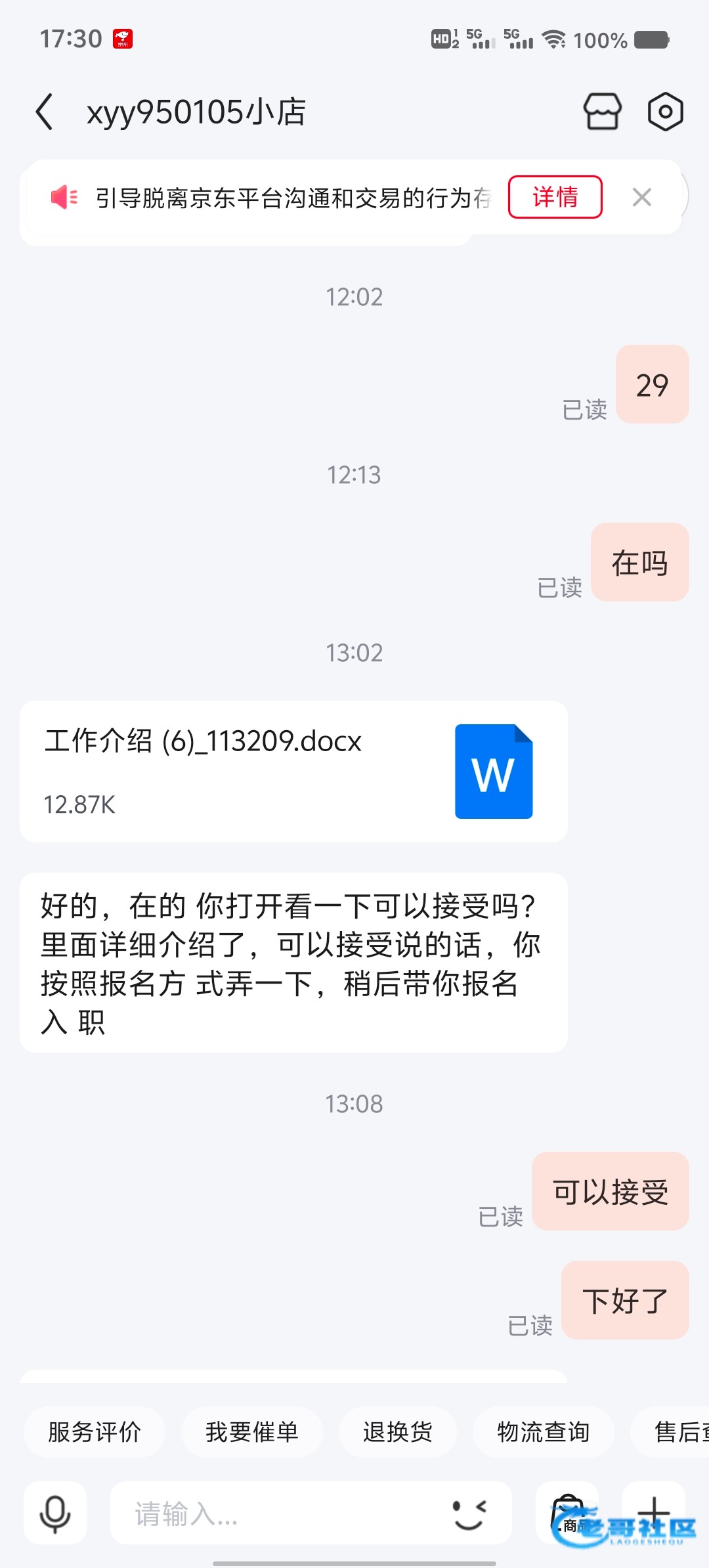 先去京东搜索xyy950105私聊店铺客服问还招人吗,他就会给你发流程,按照流程来,里面有几个任务,可以到账28,还有一个京东客服任务不知道,还没有做,任务挺简单的,几分钟就完成了,如果店铺黄了就去闲鱼搜:度假村有才的芦丁,这个用户,去他那个招人的商品私聊他,问问他还招人吗,也是一样的流程